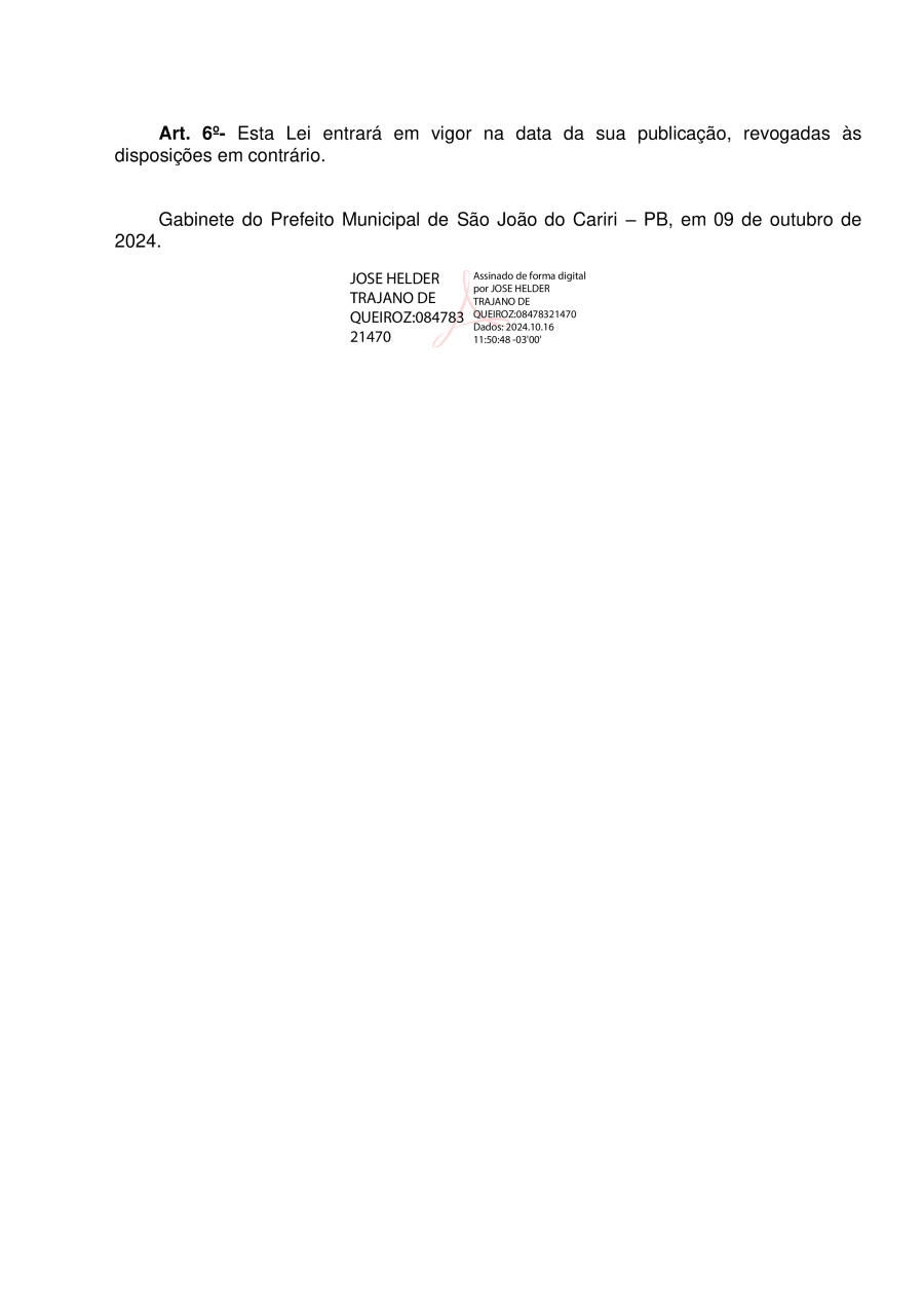 Conforme MP n° 2.200-2 de 24/08/2001, que institui a infraestrutura de chaves Públicas. Matéria Publicada no Diário Oficial do Município de São João do Cariri/PB no dia - Edição 01595.