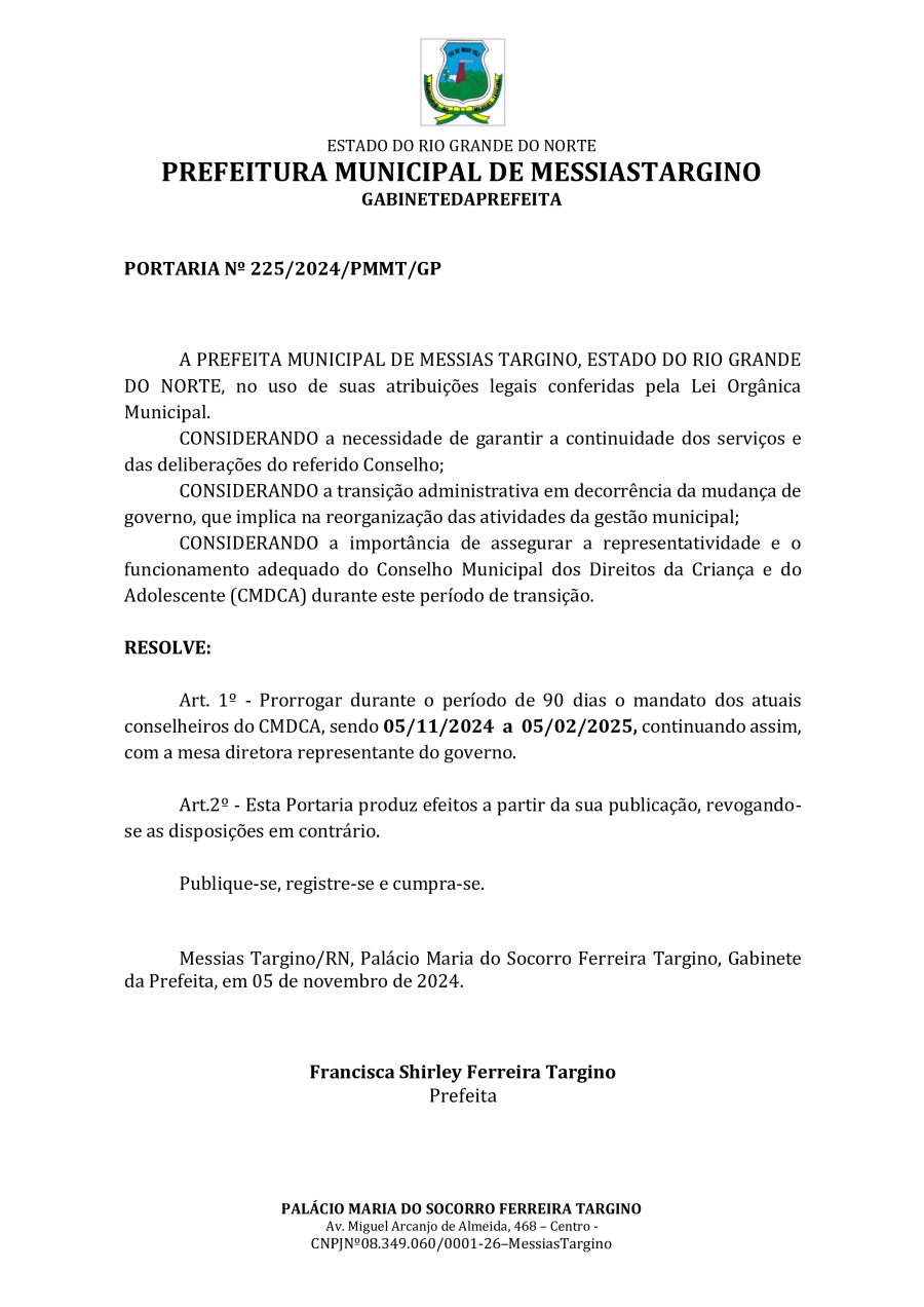 Conforme MP n° 2.200-2 de 24/08/2001, que institui a infraestrutura de chaves Públicas. Matéria Publicada no Diário Oficial do Município de Messias Targino/RN no dia - Edição 01161.