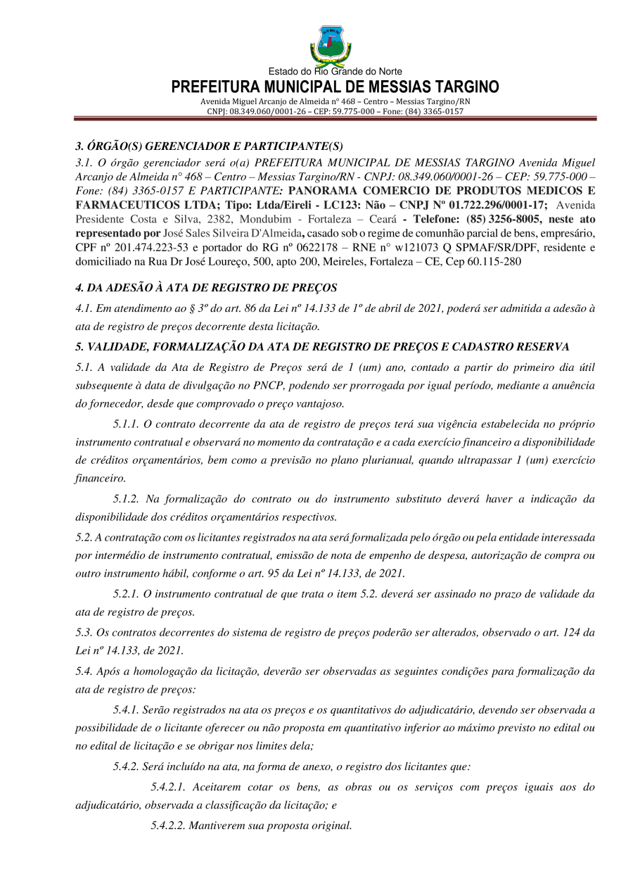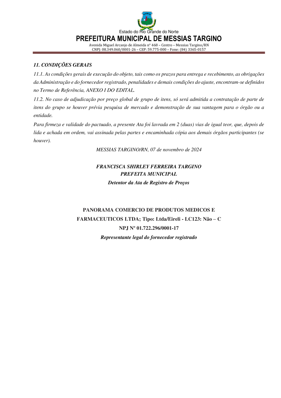 Conforme MP n° 2.200-2 de 24/08/2001, que institui a infraestrutura de chaves Públicas. Matéria Publicada no Diário Oficial do Município de Messias Targino/RN no dia - Edição 01171.