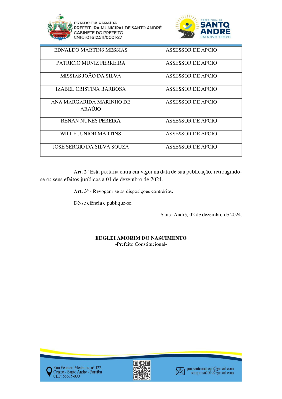 Conforme MP n° 2.200-2 de 24/08/2001, que institui a infraestrutura de chaves Públicas. Matéria Publicada no Diário Oficial do Município de Santo André/PB no dia - Edição 01116.