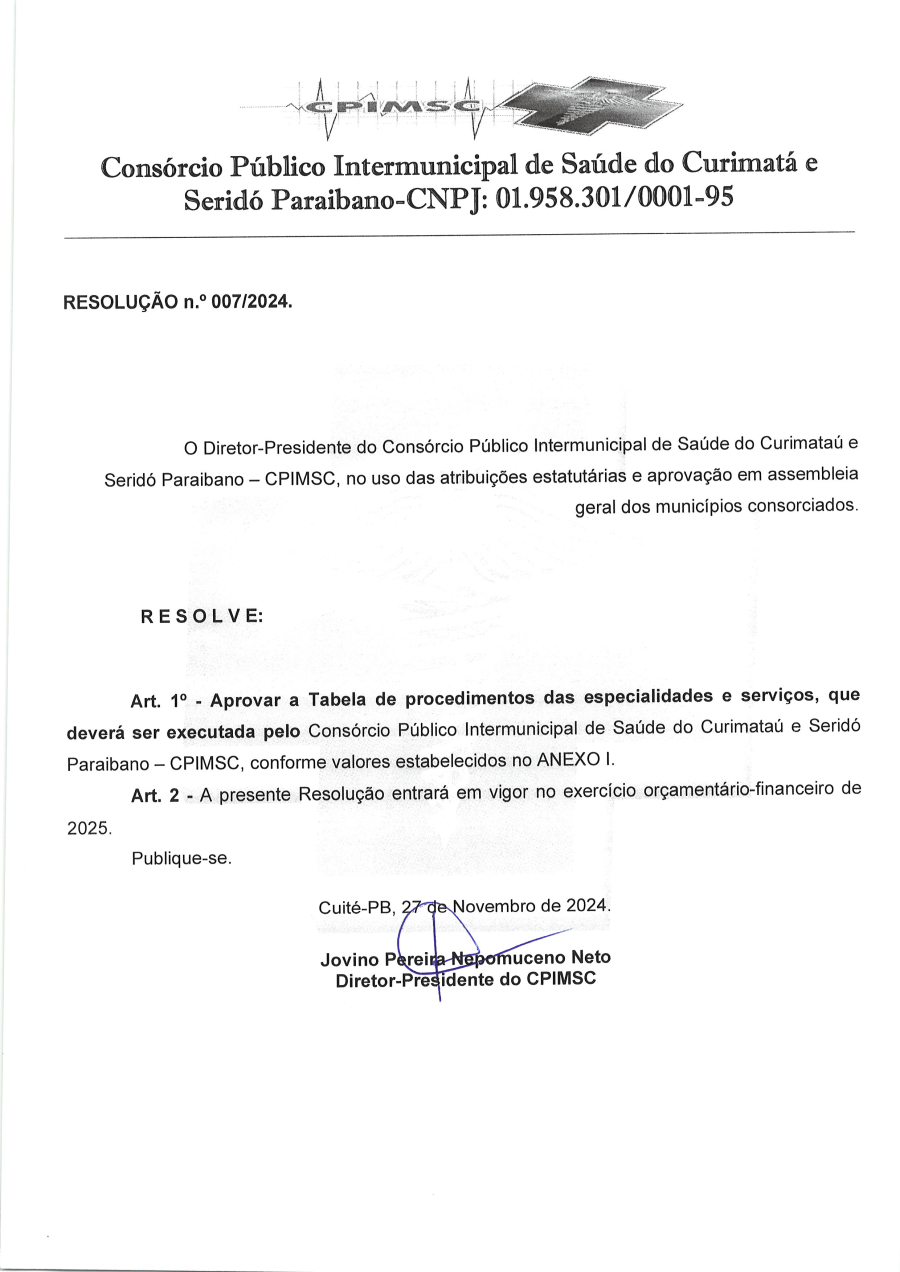 Conforme MP n° 2.200-2 de 24/08/2001, que institui a infraestrutura de chaves Públicas. Matéria Publicada no Diário Oficial do Consórcio Intermunicipal de Saúde do Curimataú e Seridó Paraibano/PB no dia - Edição 01116.