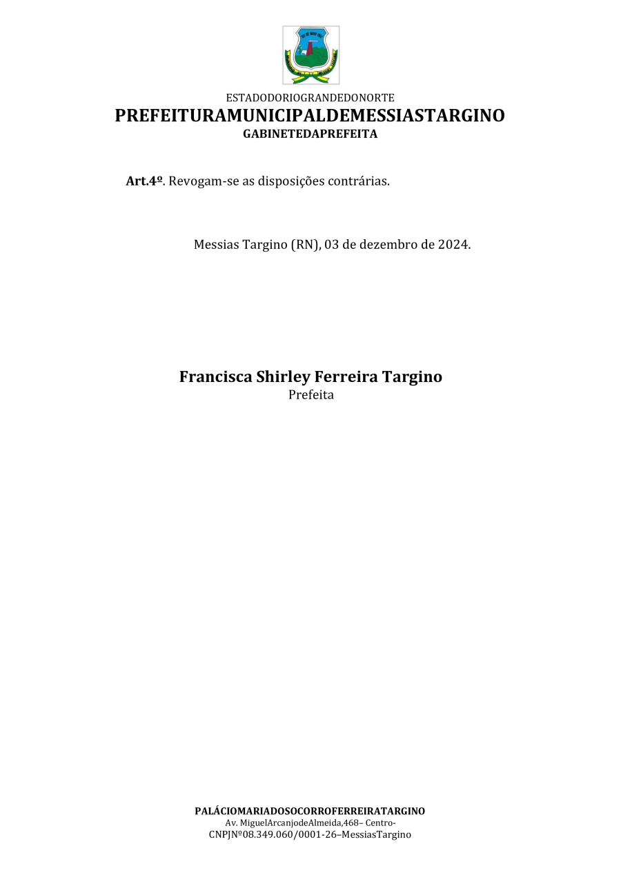 Conforme MP n° 2.200-2 de 24/08/2001, que institui a infraestrutura de chaves Públicas. Matéria Publicada no Diário Oficial do Município de Messias Targino/RN no dia - Edição 01177.