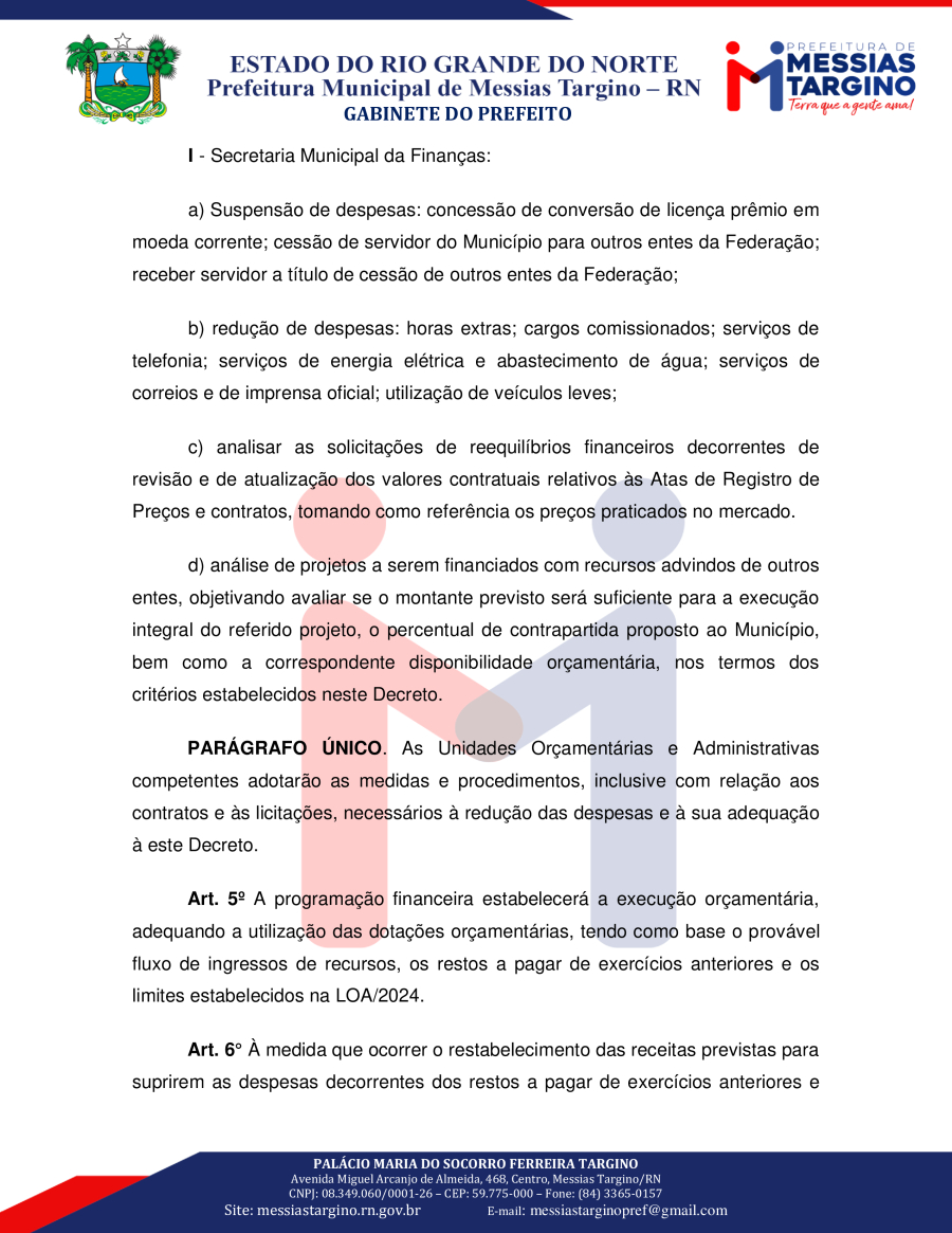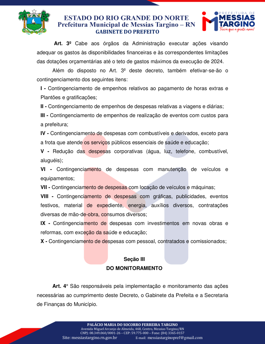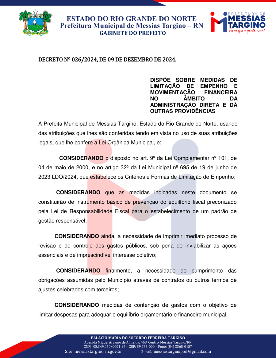 MEDIDAS DE LIMITAÇÃO DE EMPENHO E MOVIMENTAÇÃO FINANCEIRA NO ÂMBITO DA ADMINISTRAÇÃO DIRETA.