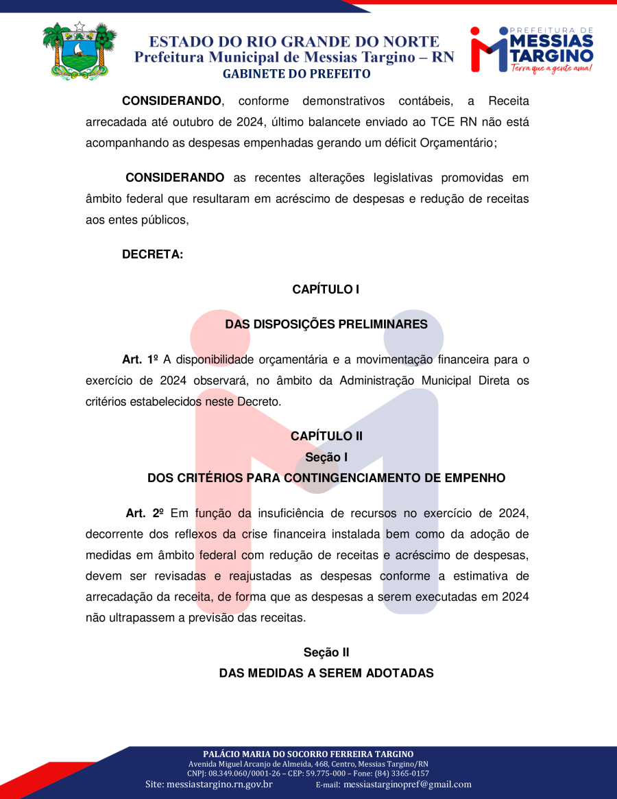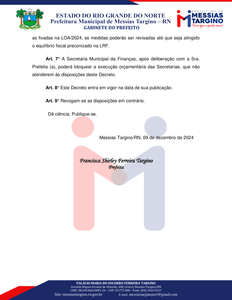 Conforme MP n° 2.200-2 de 24/08/2001, que institui a infraestrutura de chaves Públicas. Matéria Publicada no Diário Oficial do Município de Messias Targino/RN no dia - Edição 01182.