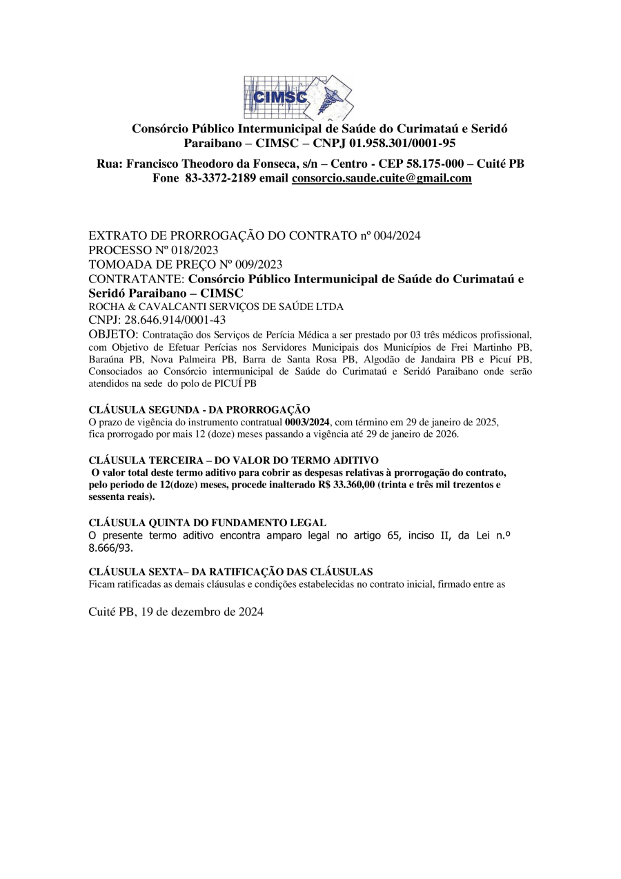Conforme MP n° 2.200-2 de 24/08/2001, que institui a infraestrutura de chaves Públicas. Matéria Publicada no Diário Oficial do Consórcio Intermunicipal de Saúde do Curimataú e Seridó Paraibano/PB no dia - Edição 01128.