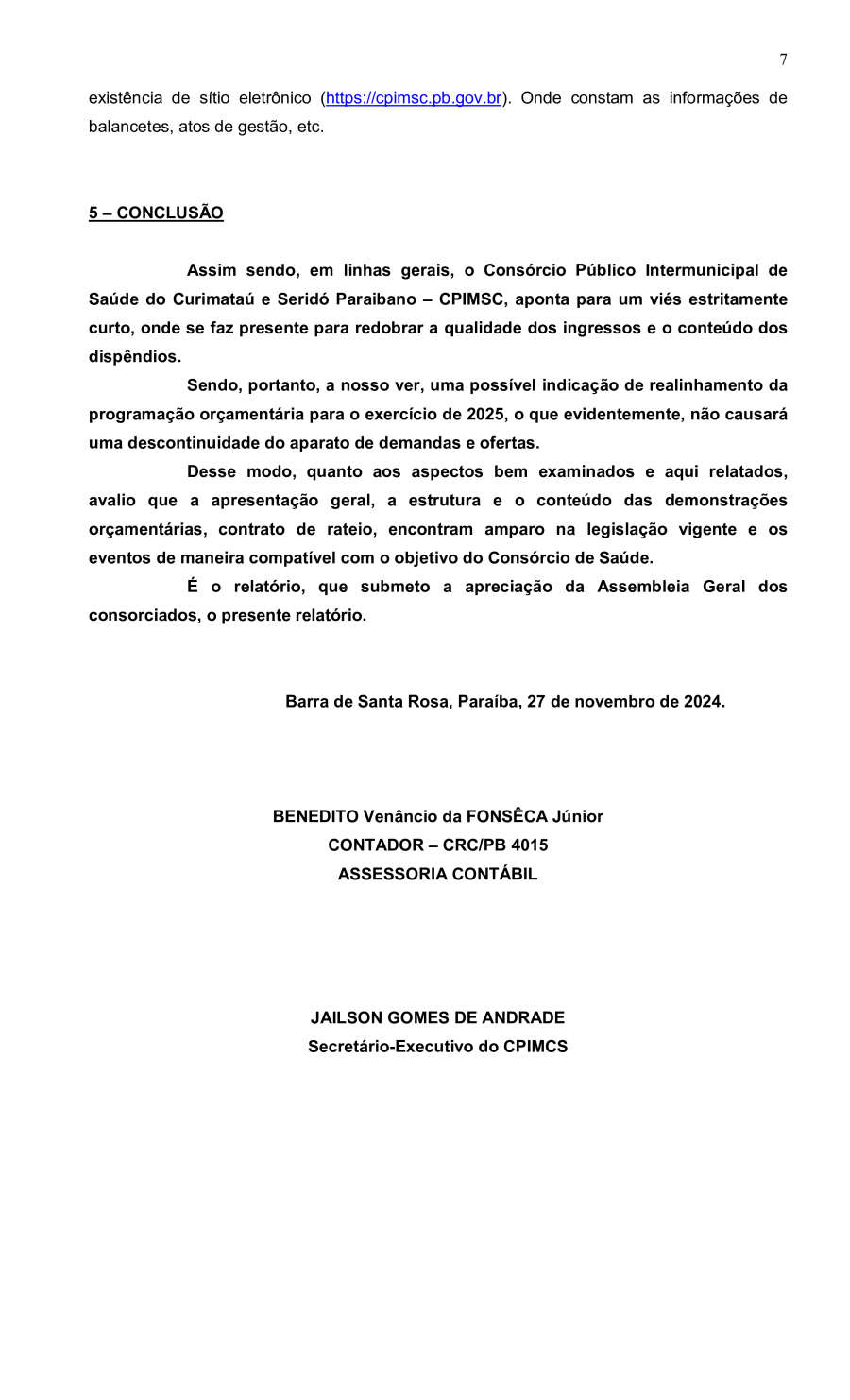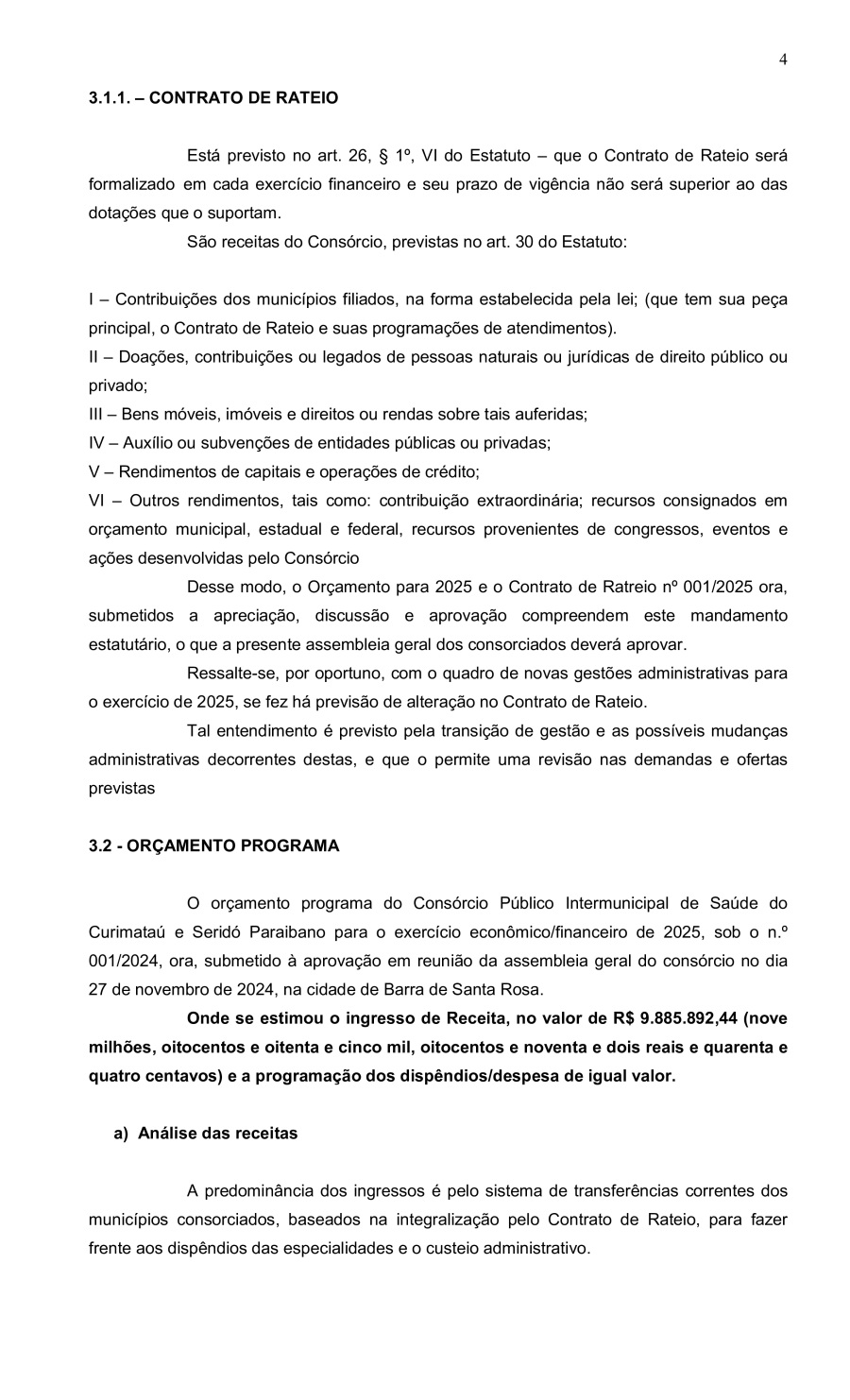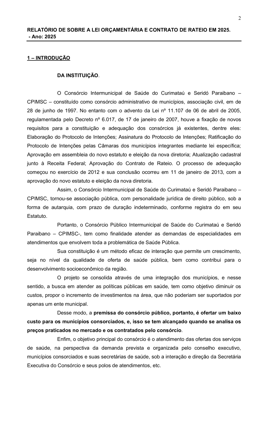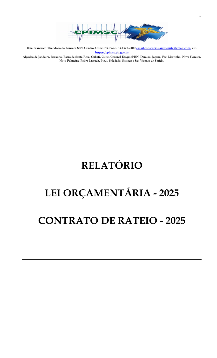 RELATÓRIO - LEI ORÇAMENTÁRIA 2025 - CONTRATO DE RATEIO 2025