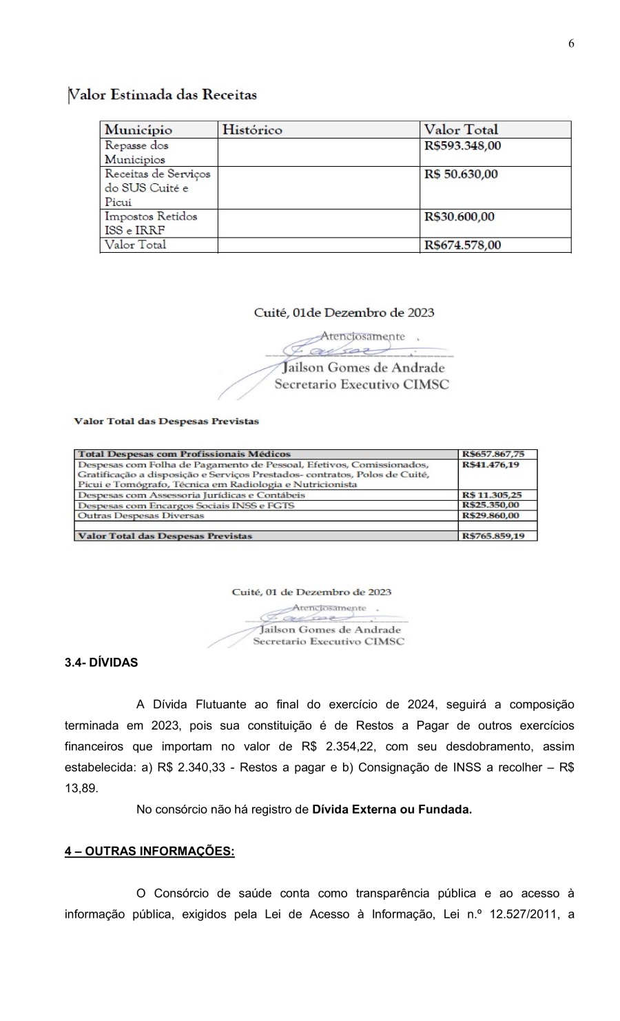 Conforme MP n° 2.200-2 de 24/08/2001, que institui a infraestrutura de chaves Públicas. Matéria Publicada no Diário Oficial do Consórcio Intermunicipal de Saúde do Curimataú e Seridó Paraibano/PB no dia - Edição 01130.