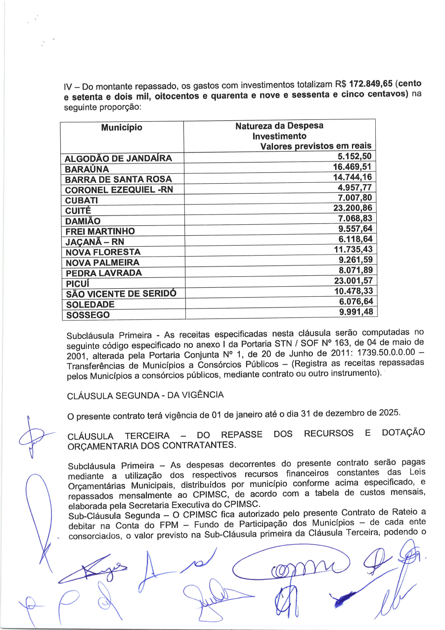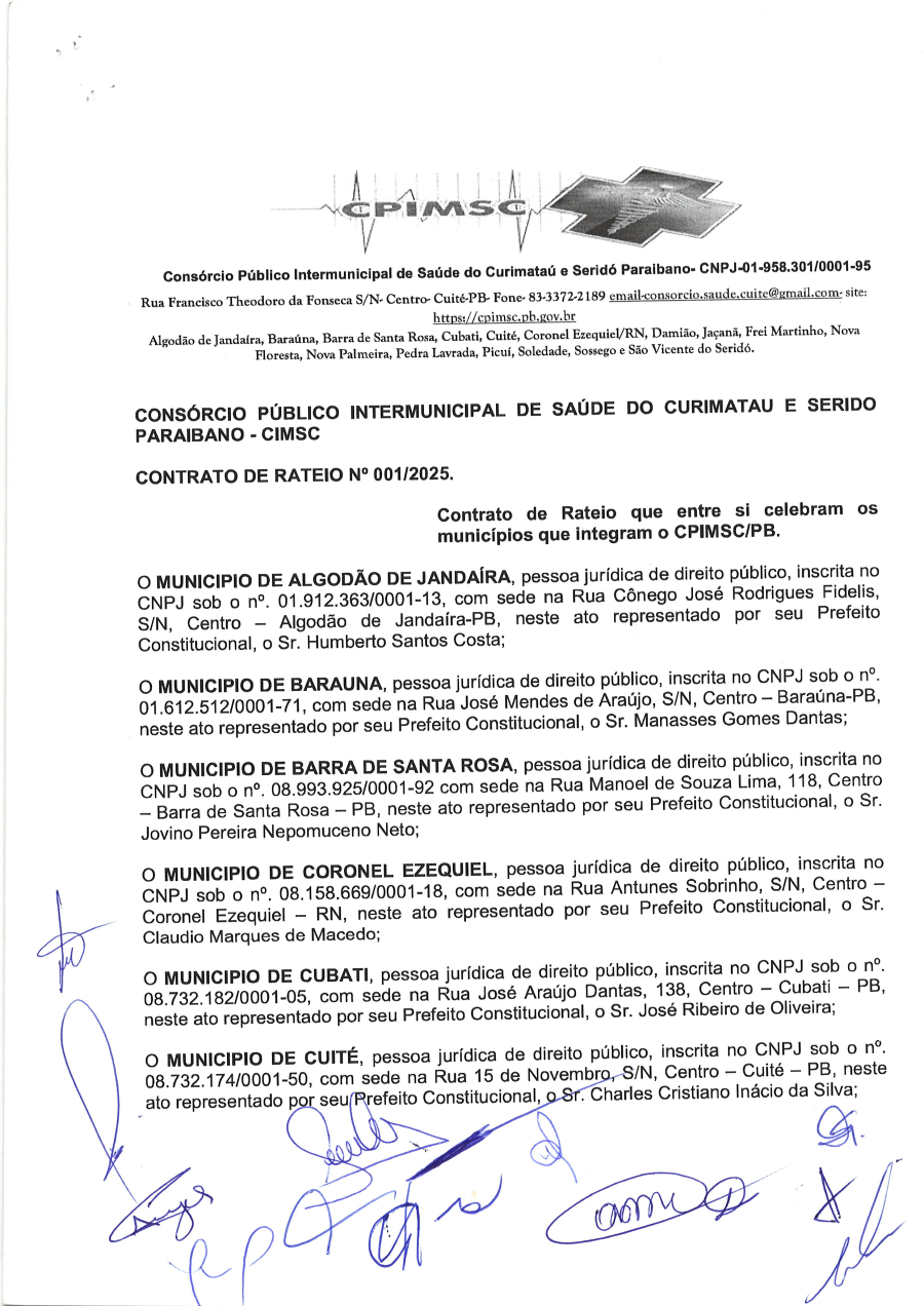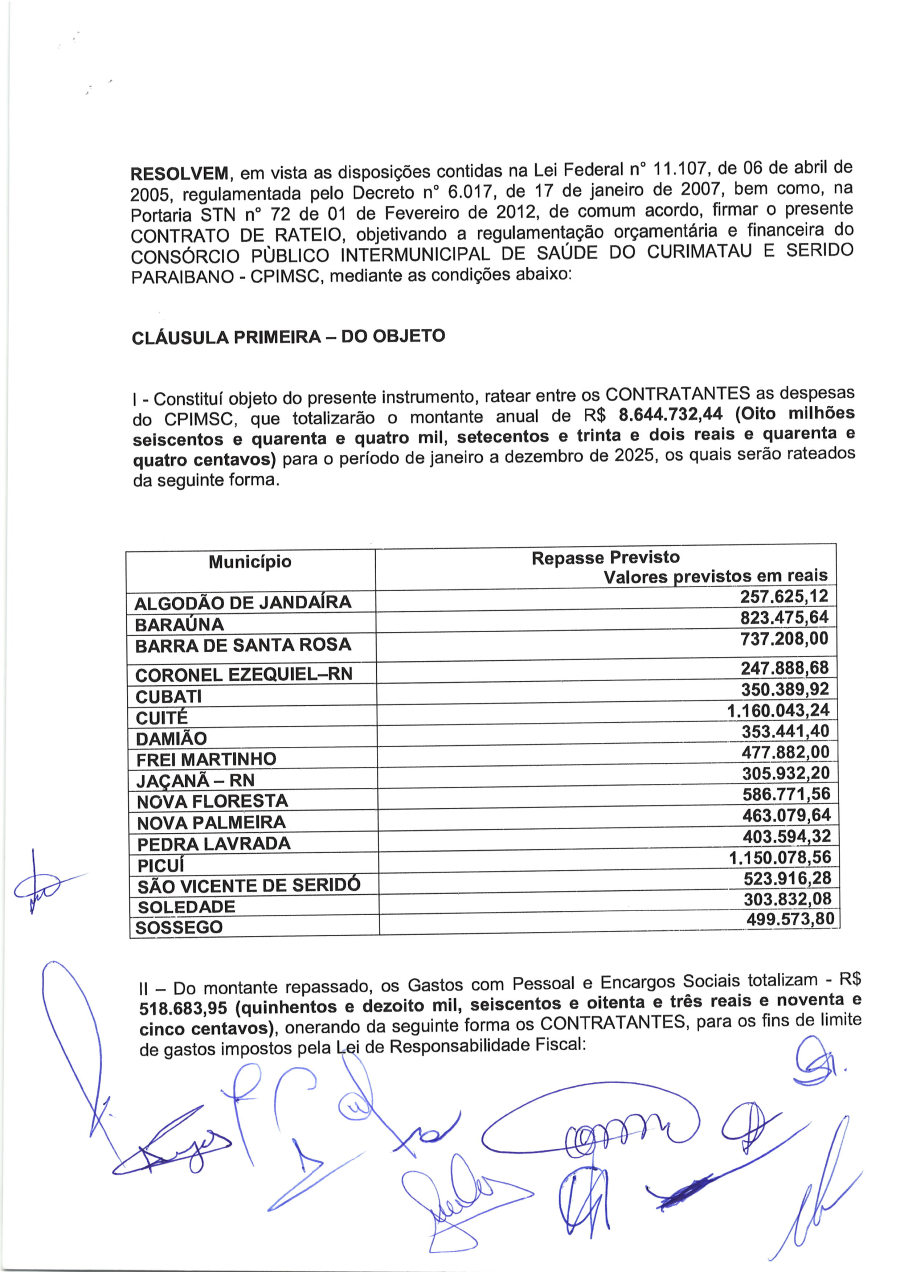 CONTRATO DE RATEIO N° 0001/2025
