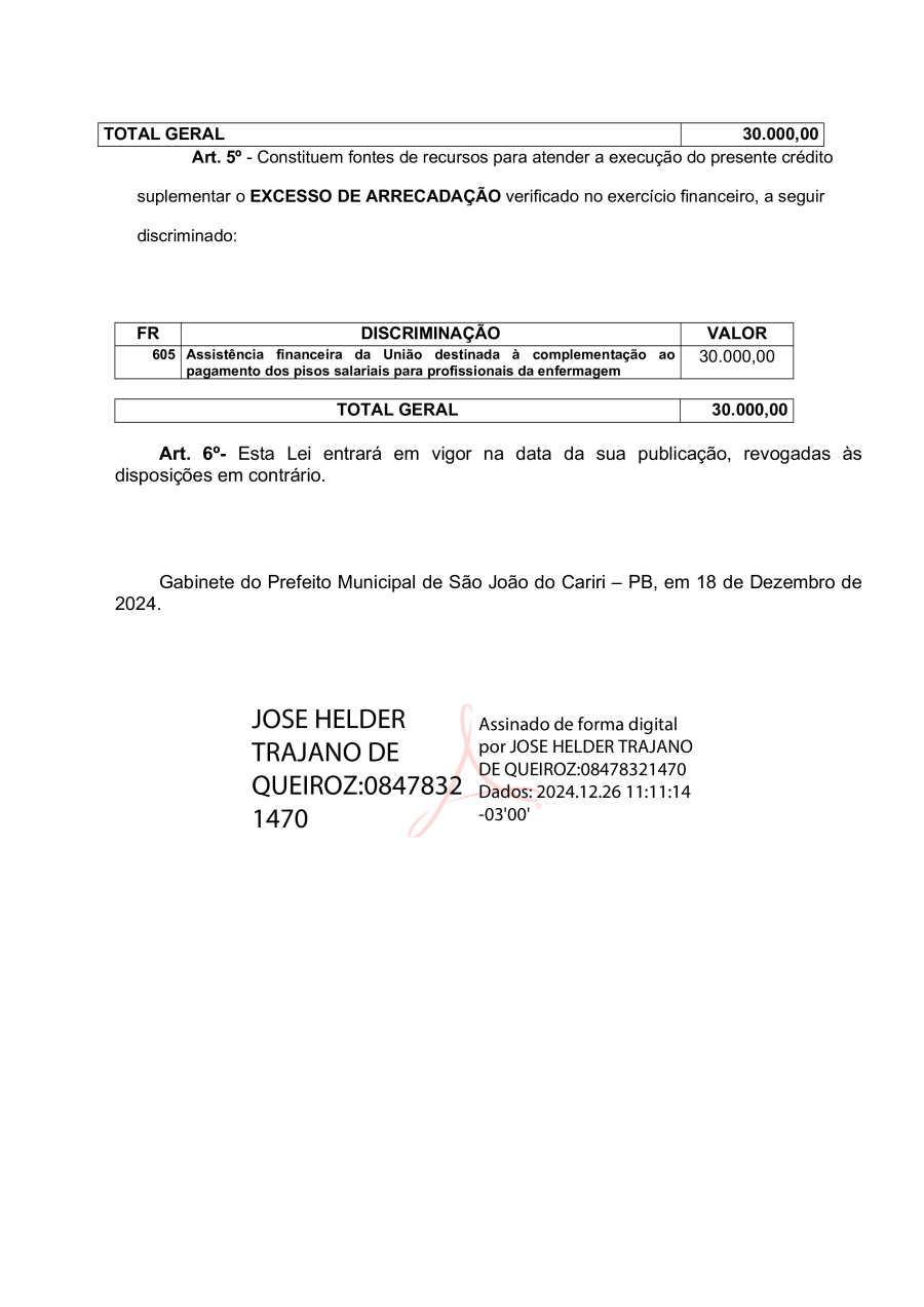 Conforme MP n° 2.200-2 de 24/08/2001, que institui a infraestrutura de chaves Públicas. Matéria Publicada no Diário Oficial do Município de São João do Cariri/PB no dia - Edição 01641.