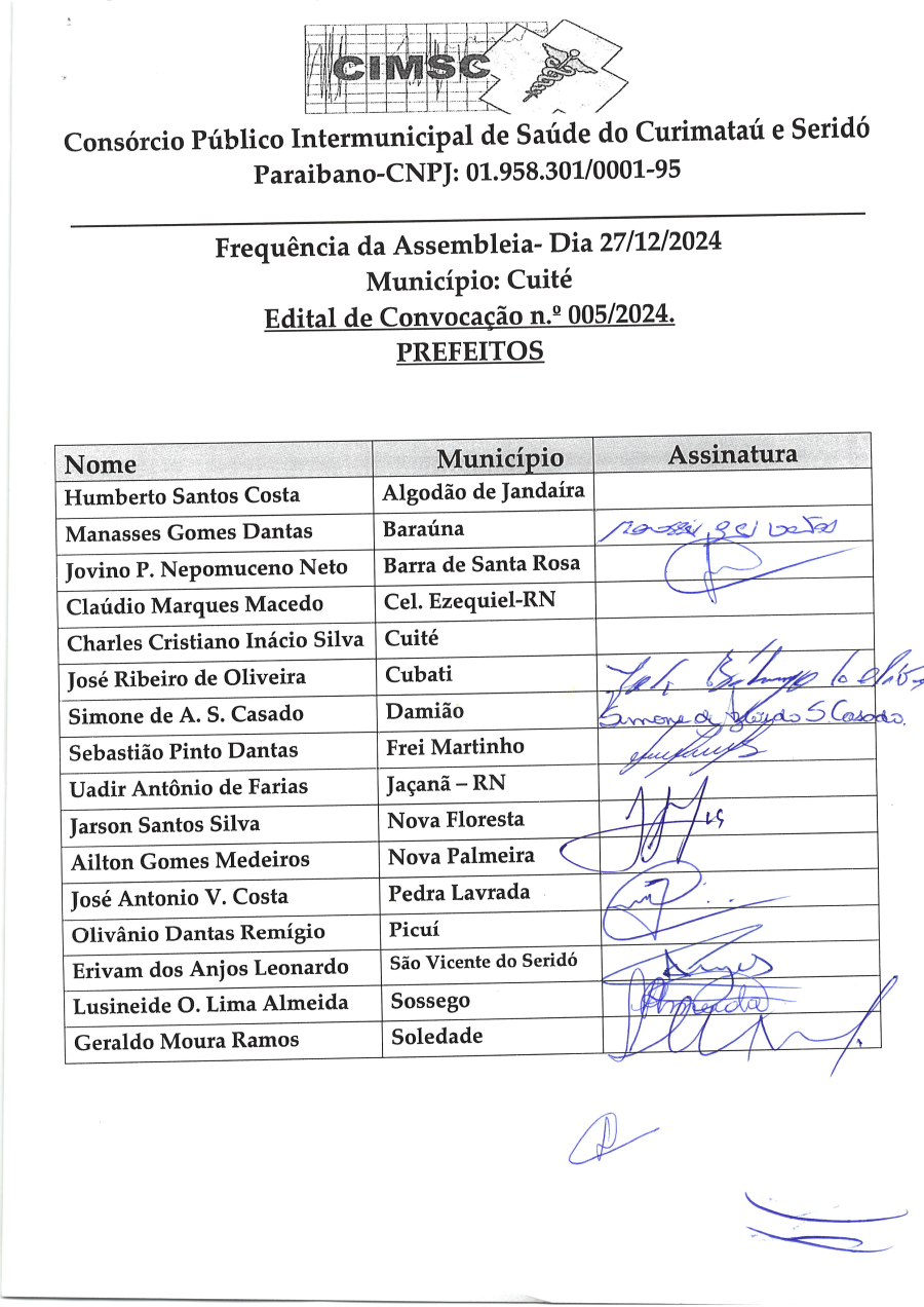 Conforme MP n° 2.200-2 de 24/08/2001, que institui a infraestrutura de chaves Públicas. Matéria Publicada no Diário Oficial do Consórcio Intermunicipal de Saúde do Curimataú e Seridó Paraibano/PB no dia - Edição 01132.