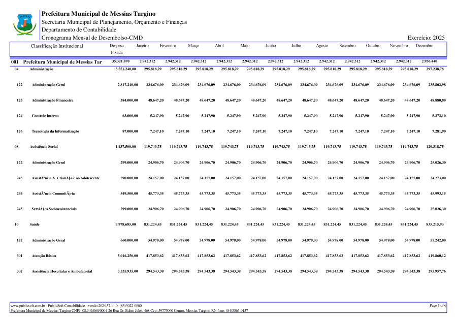 ANEXO DECRETO 029/2024 CRONOGRAMA MENSAL DE DESEMBOLSO