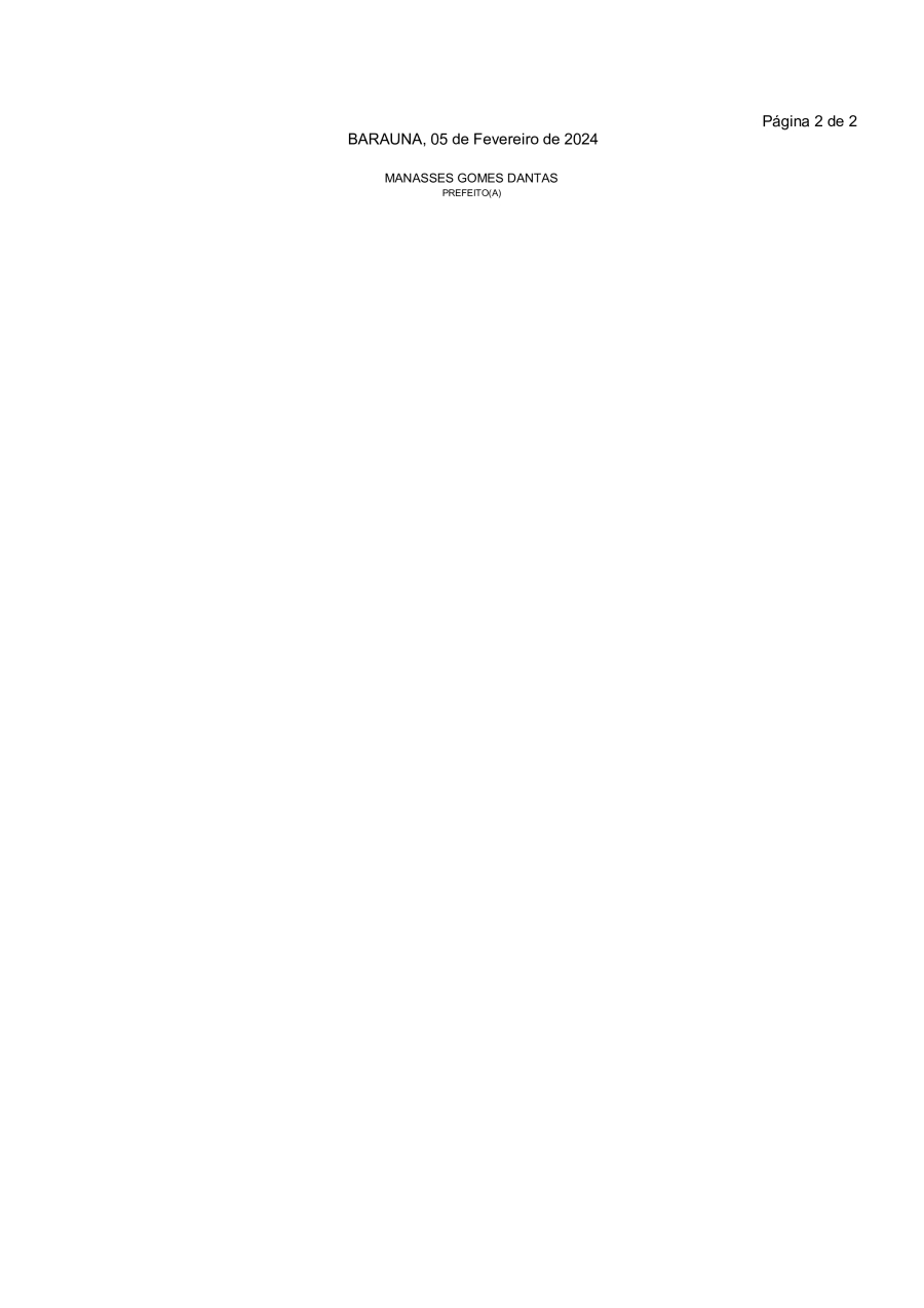 Conforme MP n° 2.200-2 de 24/08/2001, que institui a infraestrutura de chaves Públicas. Matéria Publicada no Diário Oficial do Município de Baraúna/PB no dia - Edição 01147.
