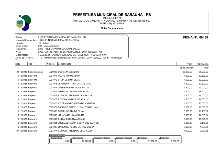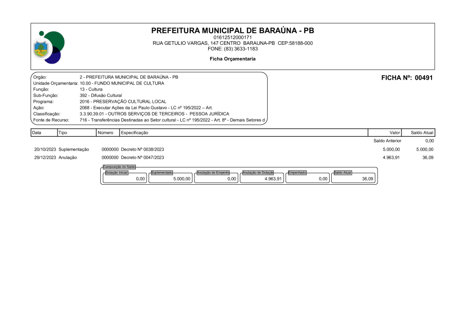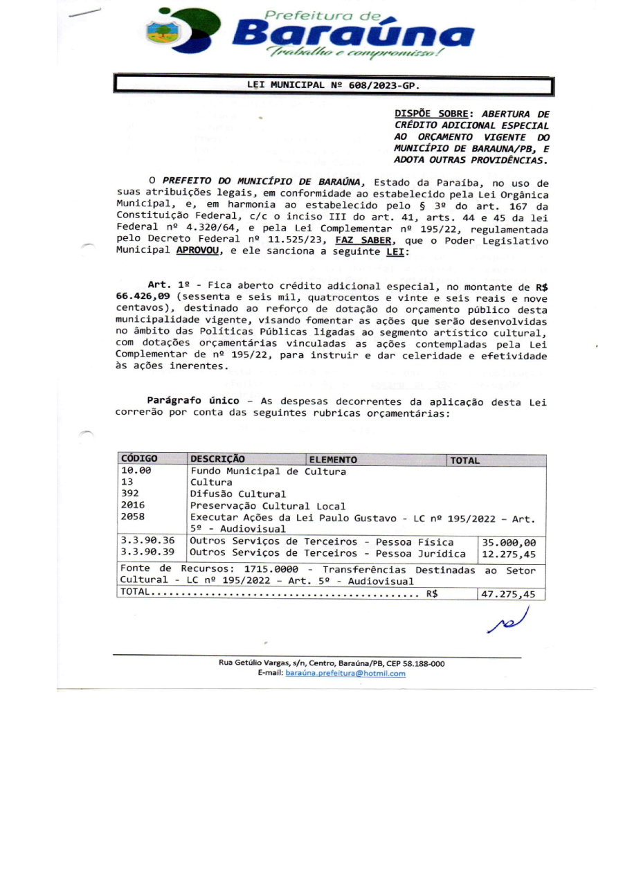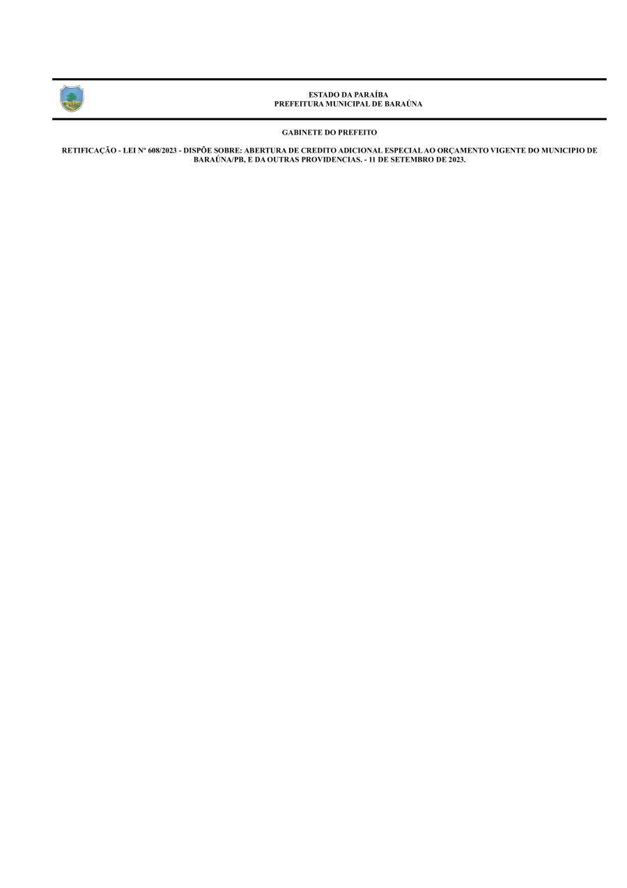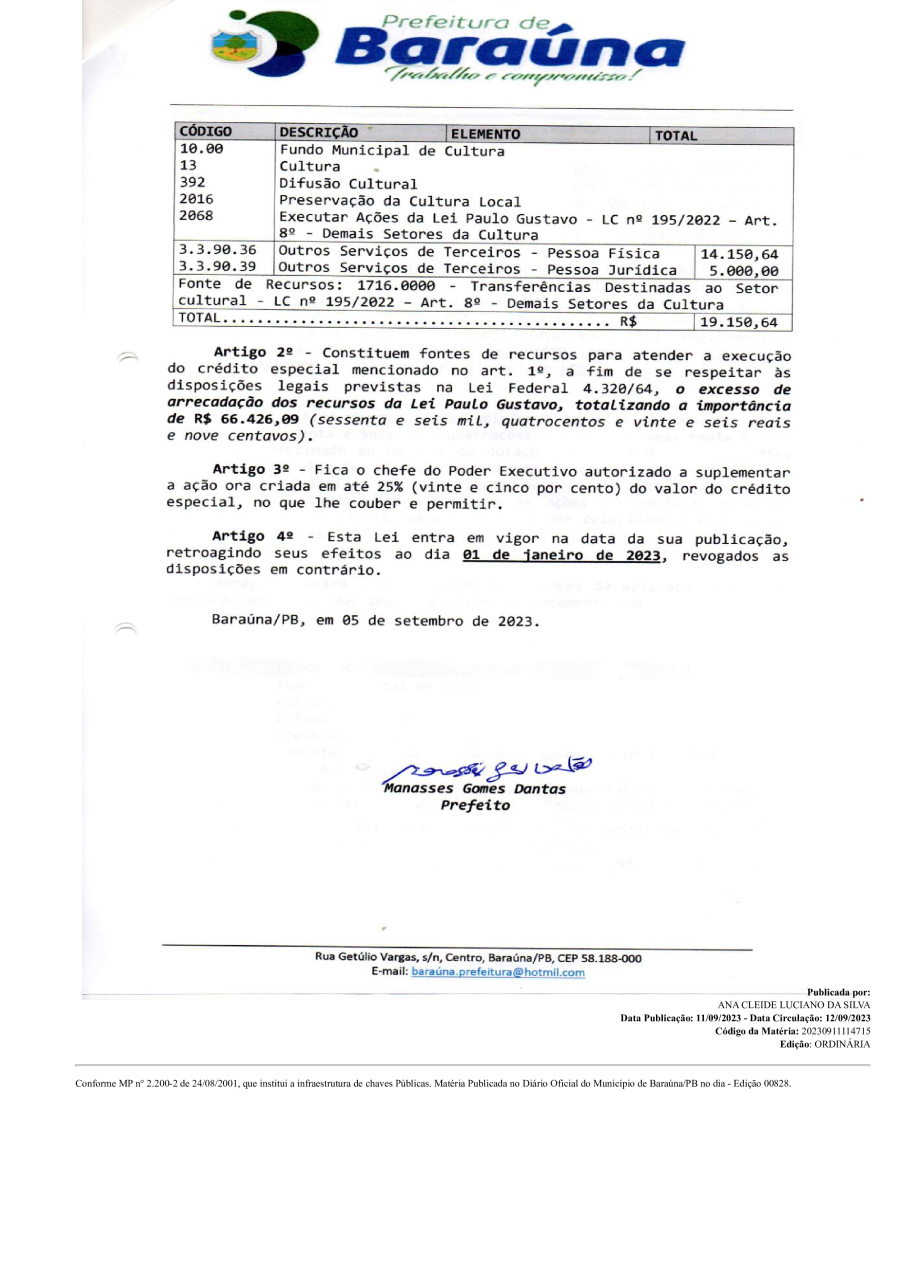 Conforme MP n° 2.200-2 de 24/08/2001, que institui a infraestrutura de chaves Públicas. Matéria Publicada no Diário Oficial do Município de Baraúna/PB no dia - Edição 01147.