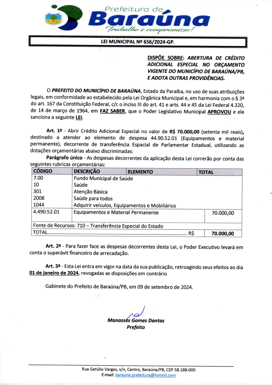 Conforme MP n° 2.200-2 de 24/08/2001, que institui a infraestrutura de chaves Públicas. Matéria Publicada no Diário Oficial do Município de Baraúna/PB no dia - Edição 01147.