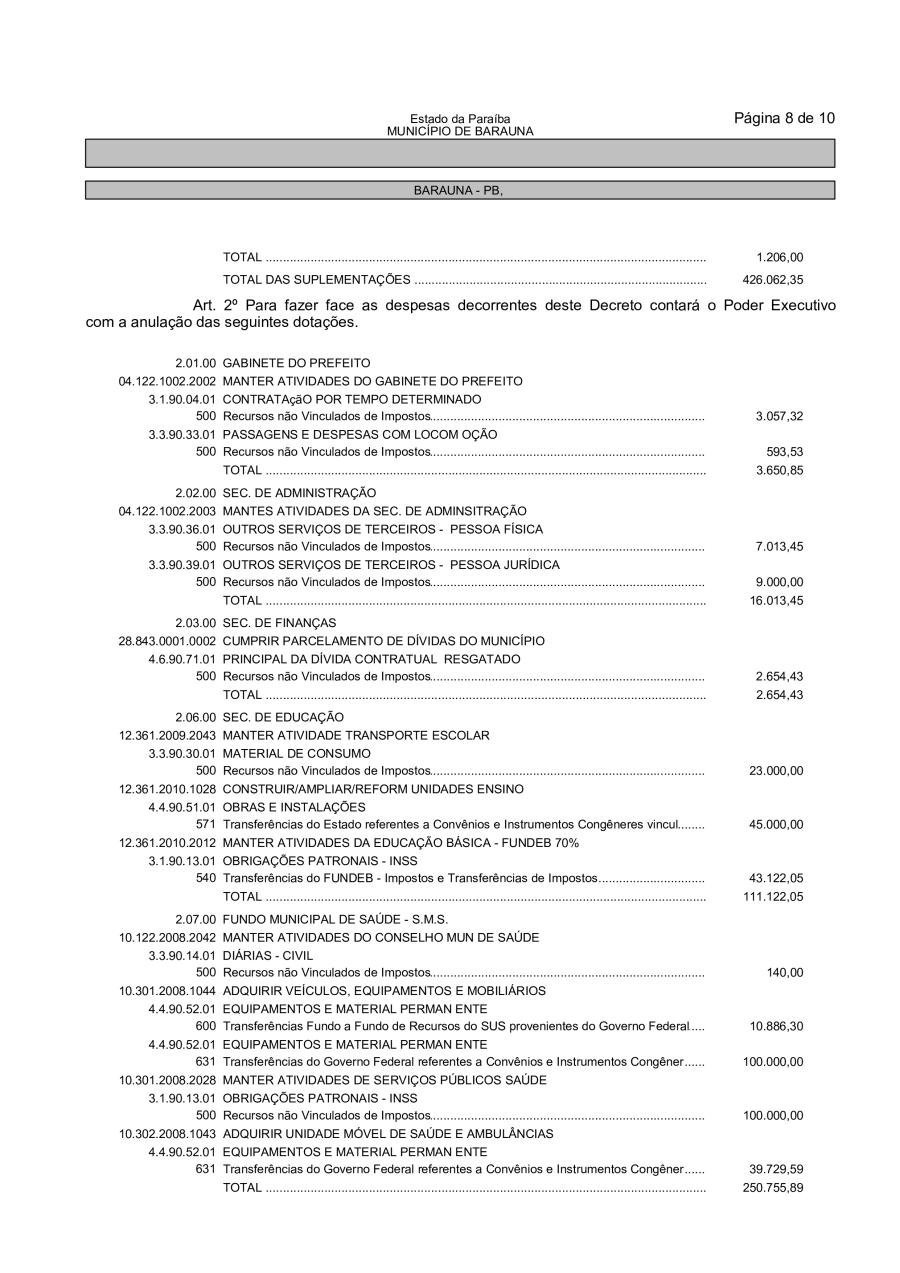 Conforme MP n° 2.200-2 de 24/08/2001, que institui a infraestrutura de chaves Públicas. Matéria Publicada no Diário Oficial do Município de Baraúna/PB no dia - Edição 01147.