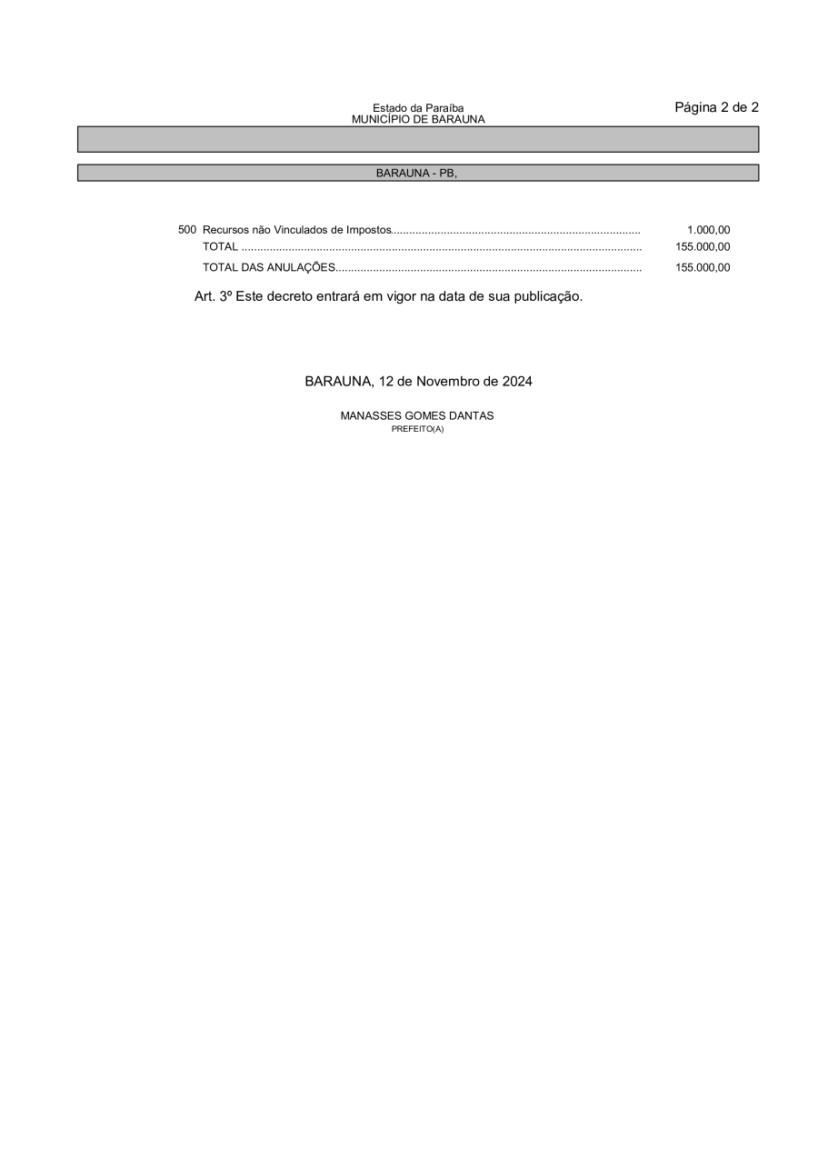 Conforme MP n° 2.200-2 de 24/08/2001, que institui a infraestrutura de chaves Públicas. Matéria Publicada no Diário Oficial do Município de Baraúna/PB no dia - Edição 01147.