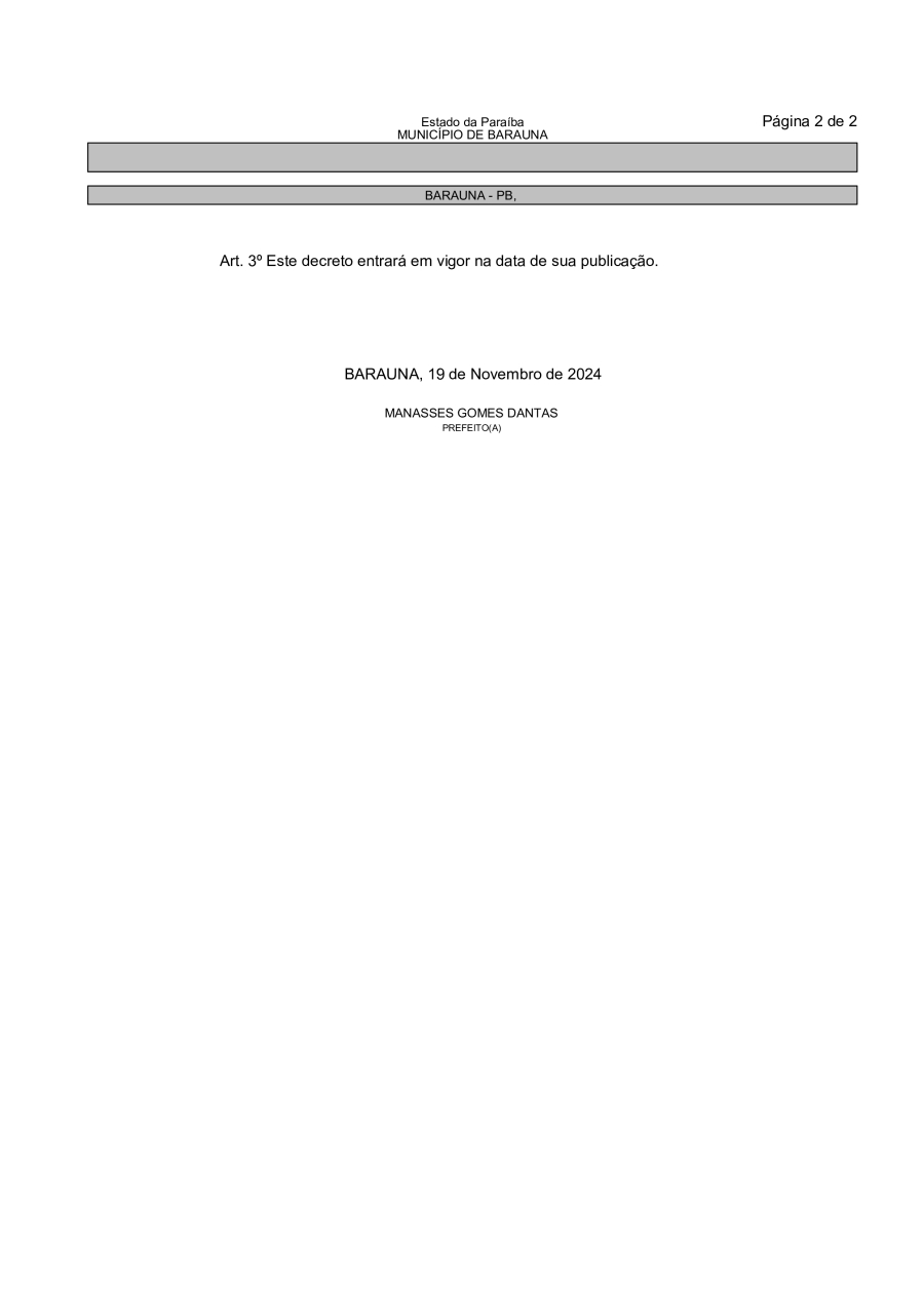 Conforme MP n° 2.200-2 de 24/08/2001, que institui a infraestrutura de chaves Públicas. Matéria Publicada no Diário Oficial do Município de Baraúna/PB no dia - Edição 01147.