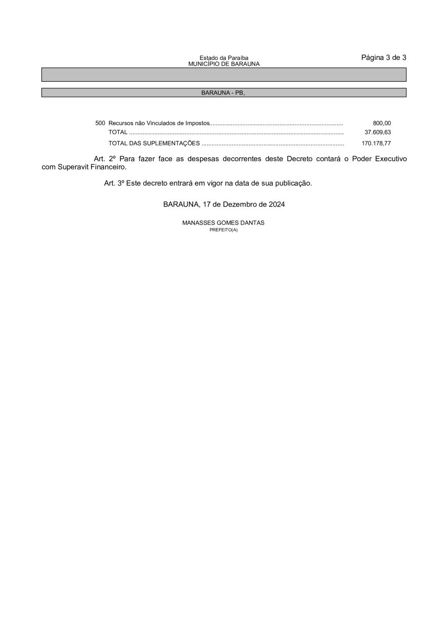 Conforme MP n° 2.200-2 de 24/08/2001, que institui a infraestrutura de chaves Públicas. Matéria Publicada no Diário Oficial do Município de Baraúna/PB no dia - Edição 01147.