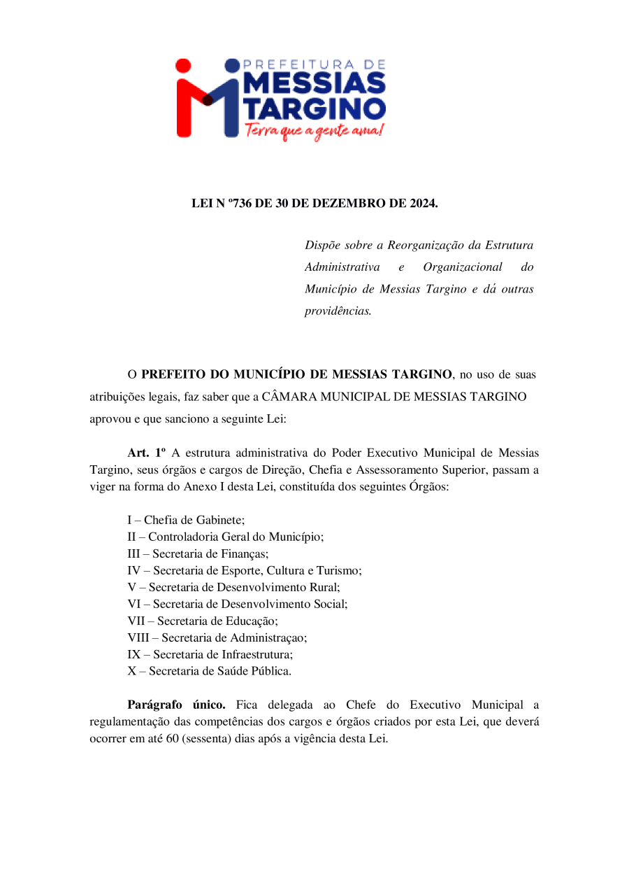 RETIFICAÇÃO - REORGANIZAÇÃO DA ESTRUTURA ADMINISTRATIVA E ORGANIZACIONAL DO MUNICÍPIO DE MESSIAS TARGINO.