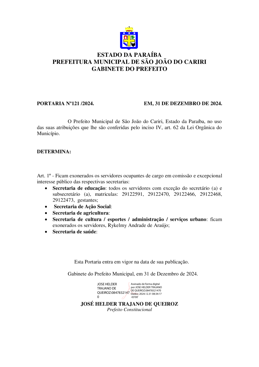 Conforme MP n° 2.200-2 de 24/08/2001, que institui a infraestrutura de chaves Públicas. Matéria Publicada no Diário Oficial do Município de São João do Cariri/PB no dia - Edição .