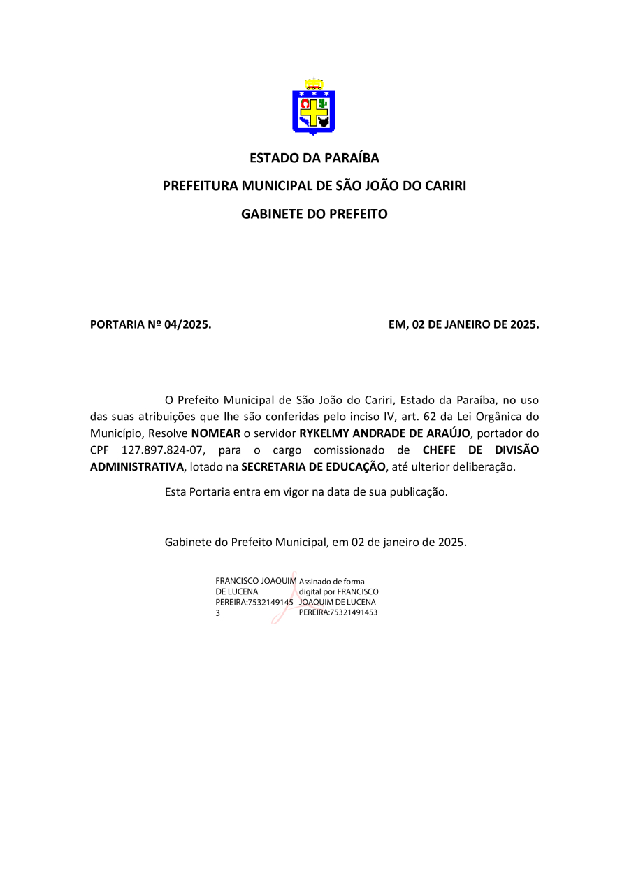 PORTARIA 04/2025 - RYKELMY ANDRADE DE ARAÚJO