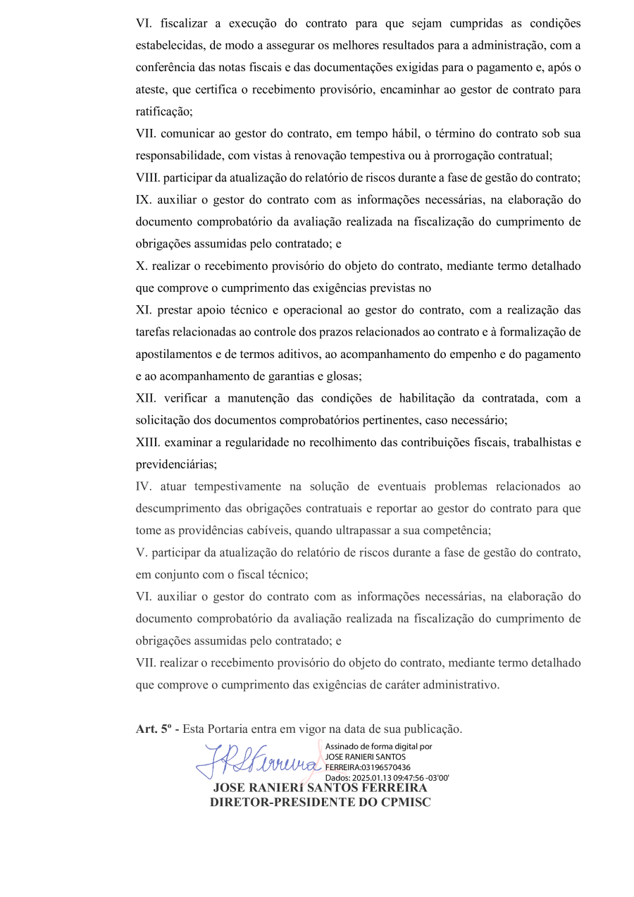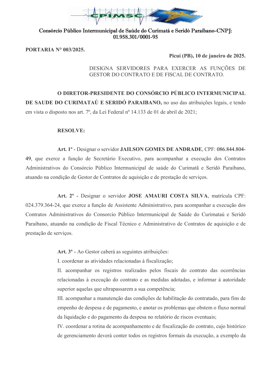 PORTARIA N° 0003/2025 - DESIGNA SERVIDORES PARA EXERCER AS FUNÇÕES DEGESTOR DO CONTRATO E DE FISCAL DE CONTRATO