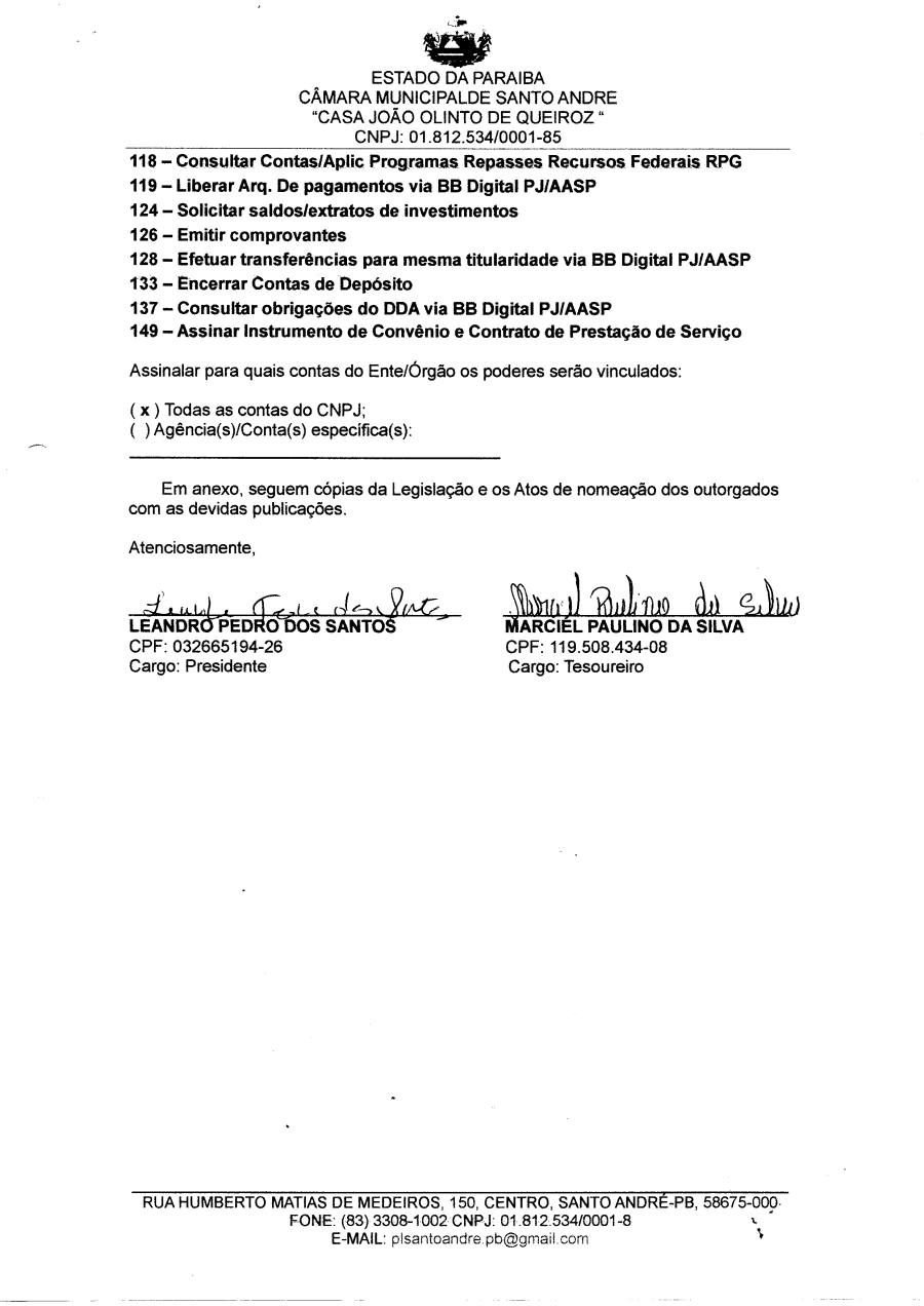 Conforme MP n° 2.200-2 de 24/08/2001, que institui a infraestrutura de chaves Públicas. Matéria Publicada no Diário Oficial do Município de Santo André/PB no dia - Edição 01133.