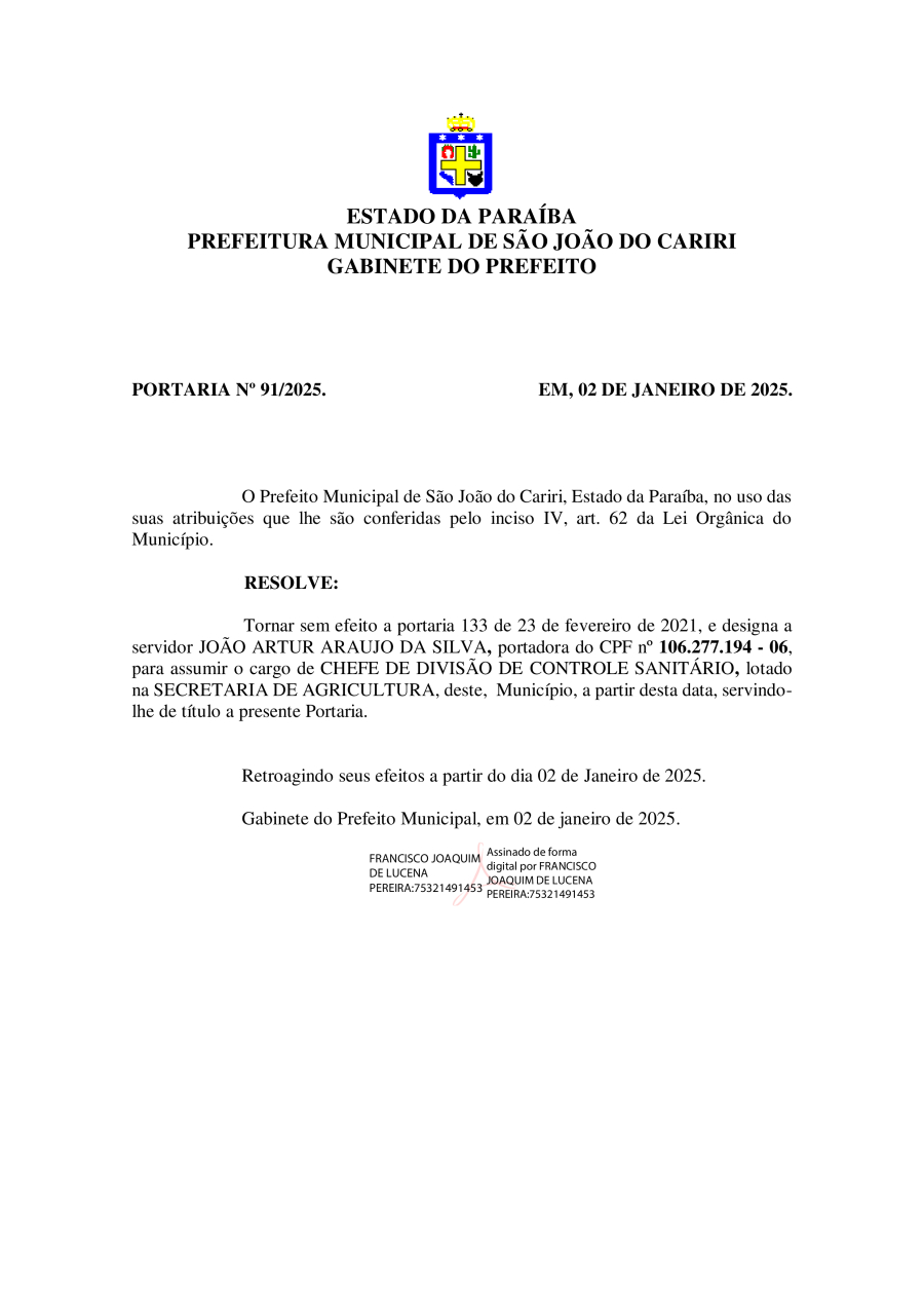 PORTARIA 91/2025 - JOÃO ARTUR ARAUJO DA SILVA