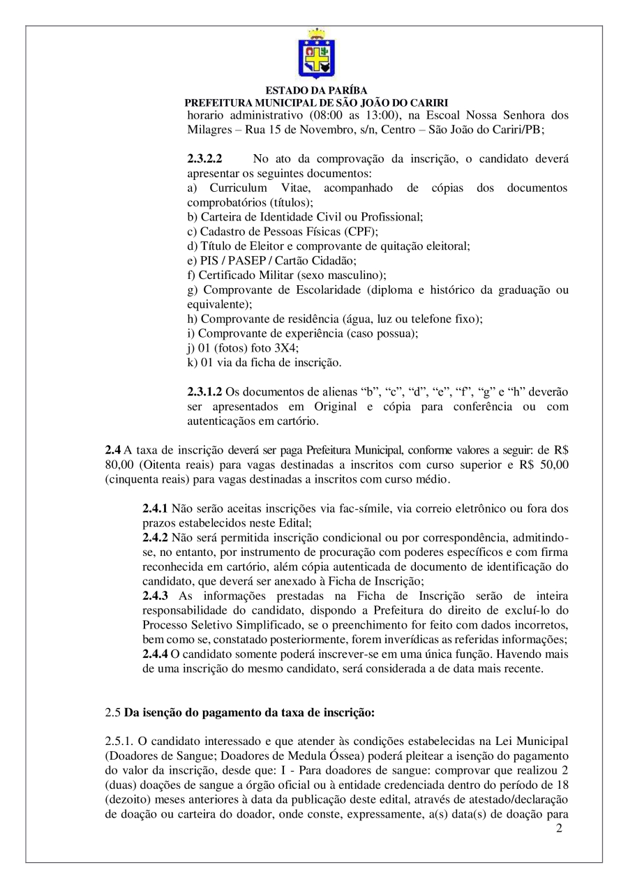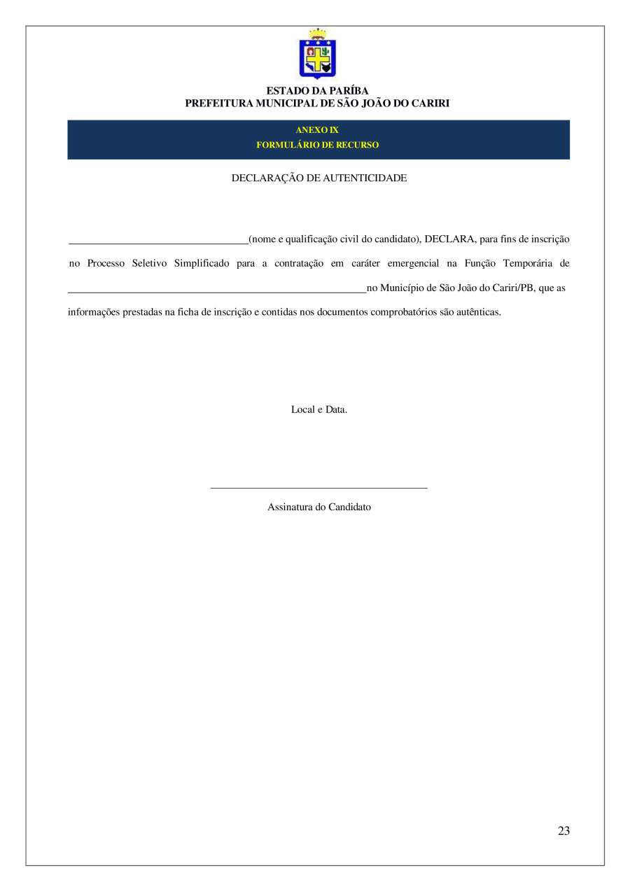 Conforme MP n° 2.200-2 de 24/08/2001, que institui a infraestrutura de chaves Públicas. Matéria Publicada no Diário Oficial do Município de São João do Cariri/PB no dia - Edição 01658.