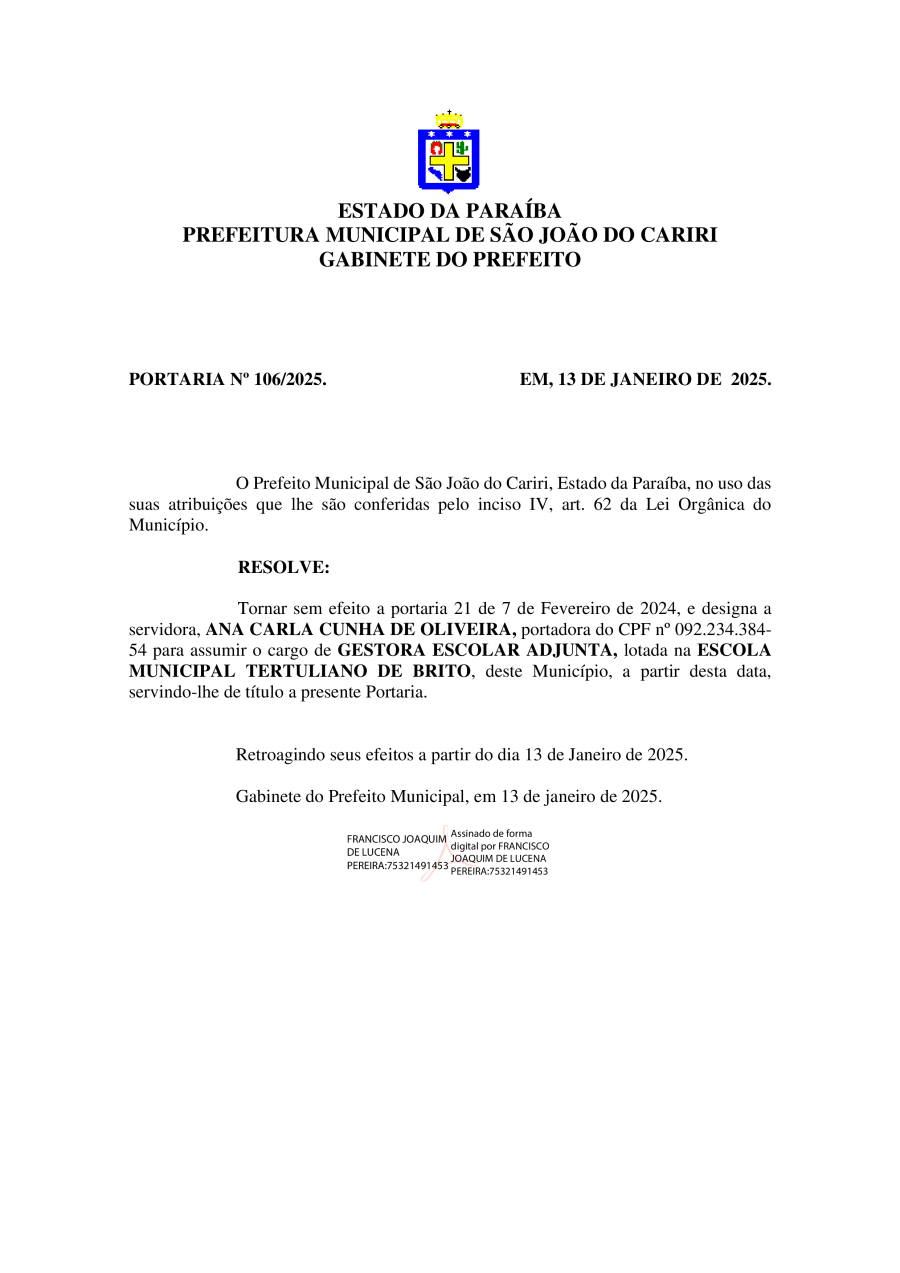 PORTARIA 106/2025 - ANA CARLA CUNHA DE OLIVEIRA