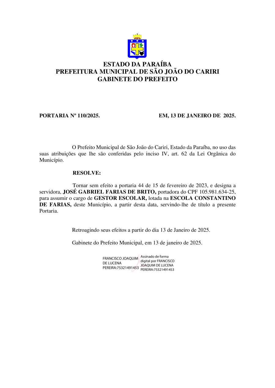 PORTARIA 110/2025 - JOSÉ GABRIEL FARIAS DE BRITO
