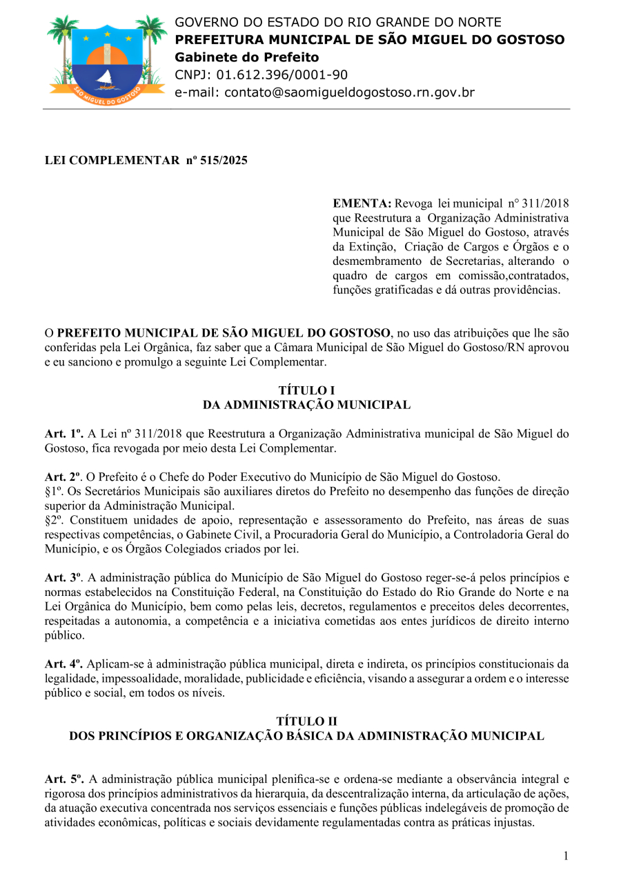 LEI 515/2025. REVOGA LEI MUNICIPAL 311/2018