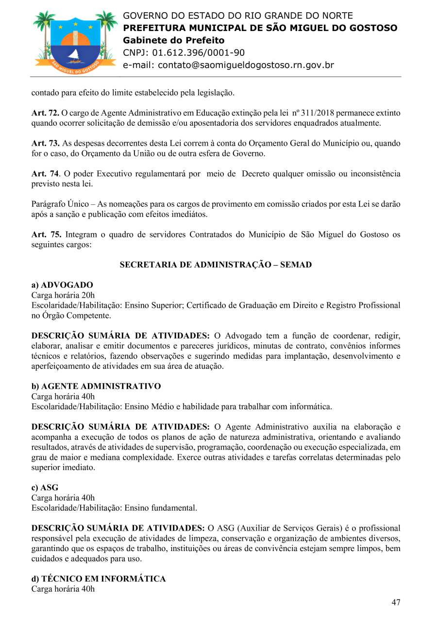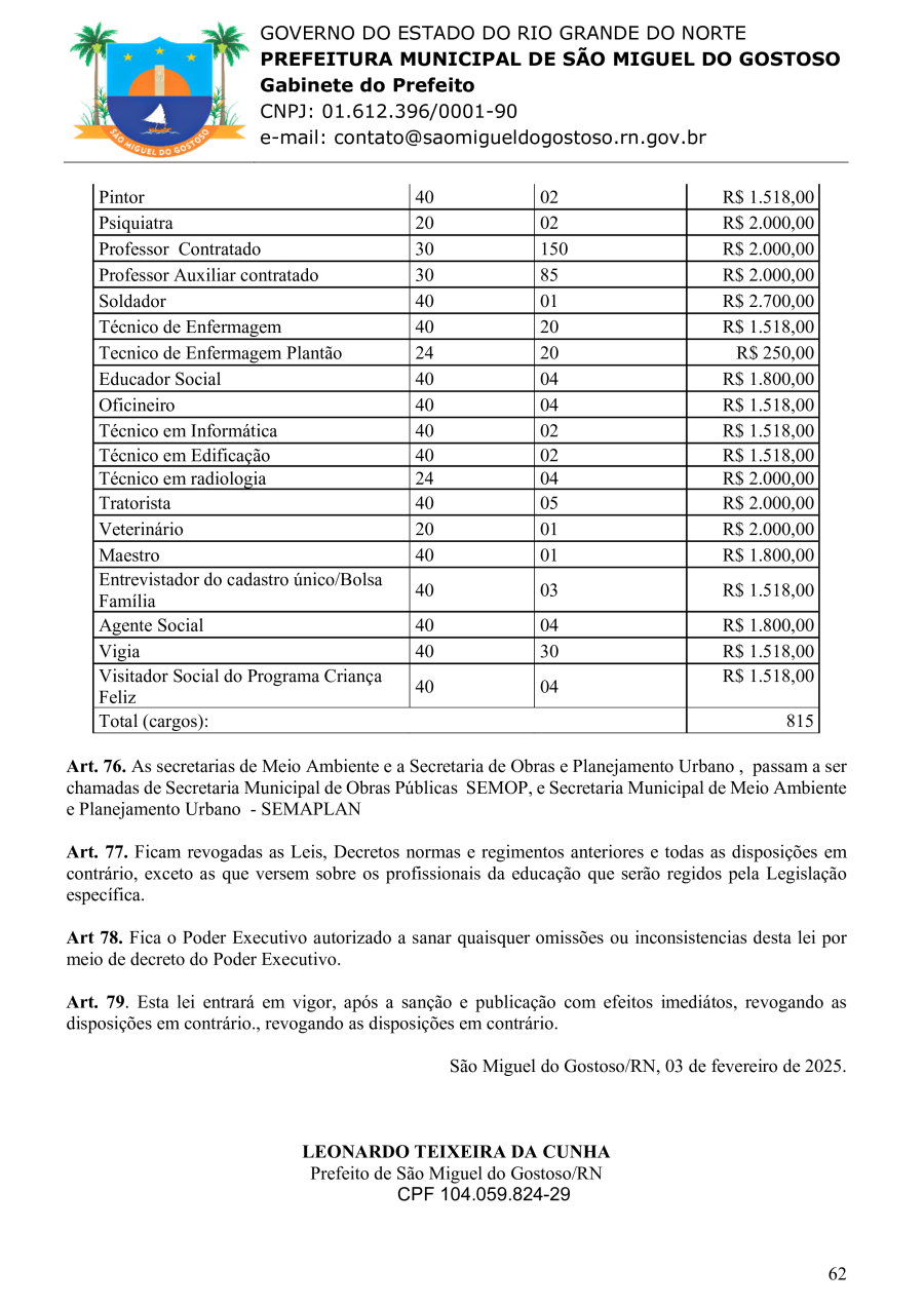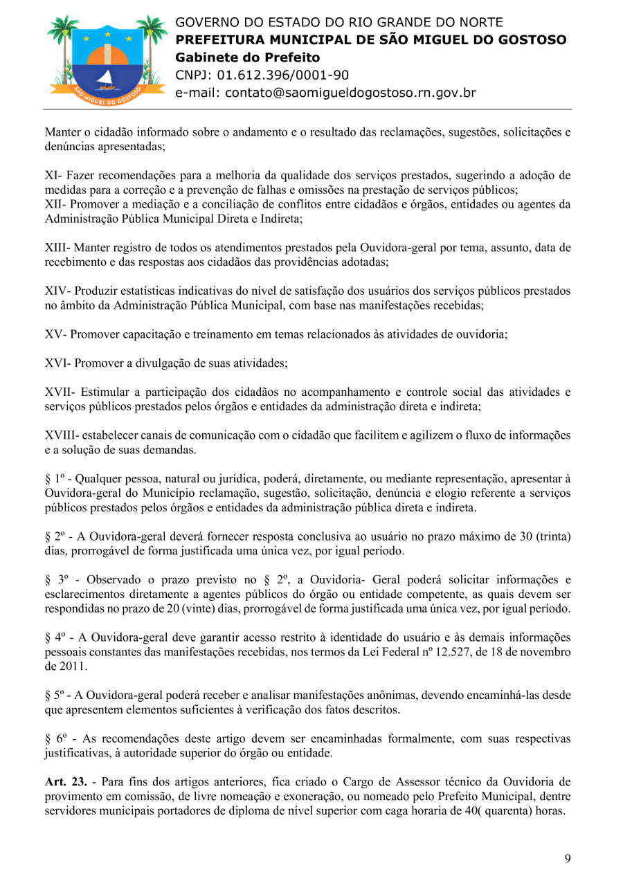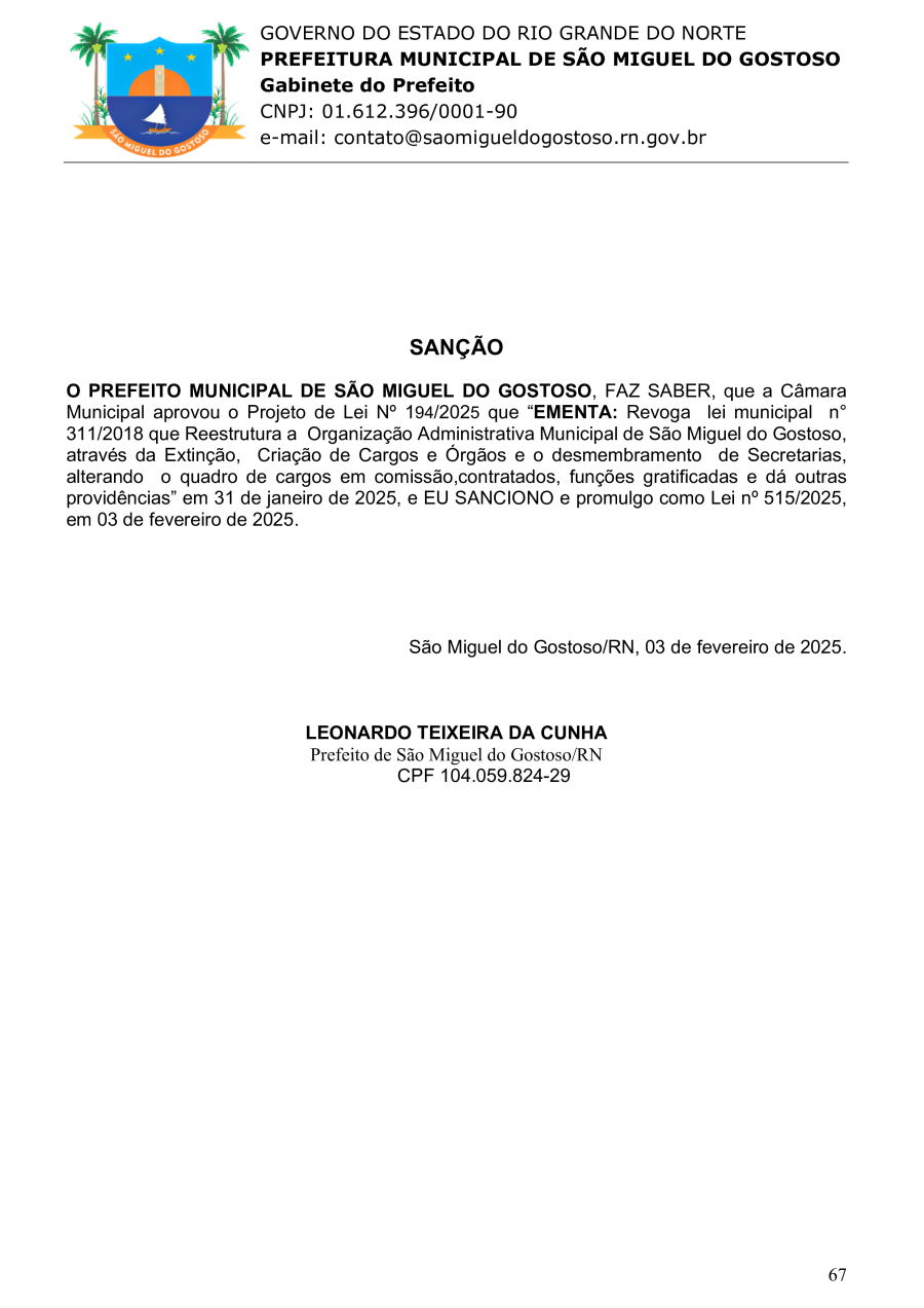 Conforme MP n° 2.200-2 de 24/08/2001, que institui a infraestrutura de chaves Públicas. Matéria Publicada no Diário Oficial do Município de São Miguel do Gostoso/RN no dia - Edição 01013.