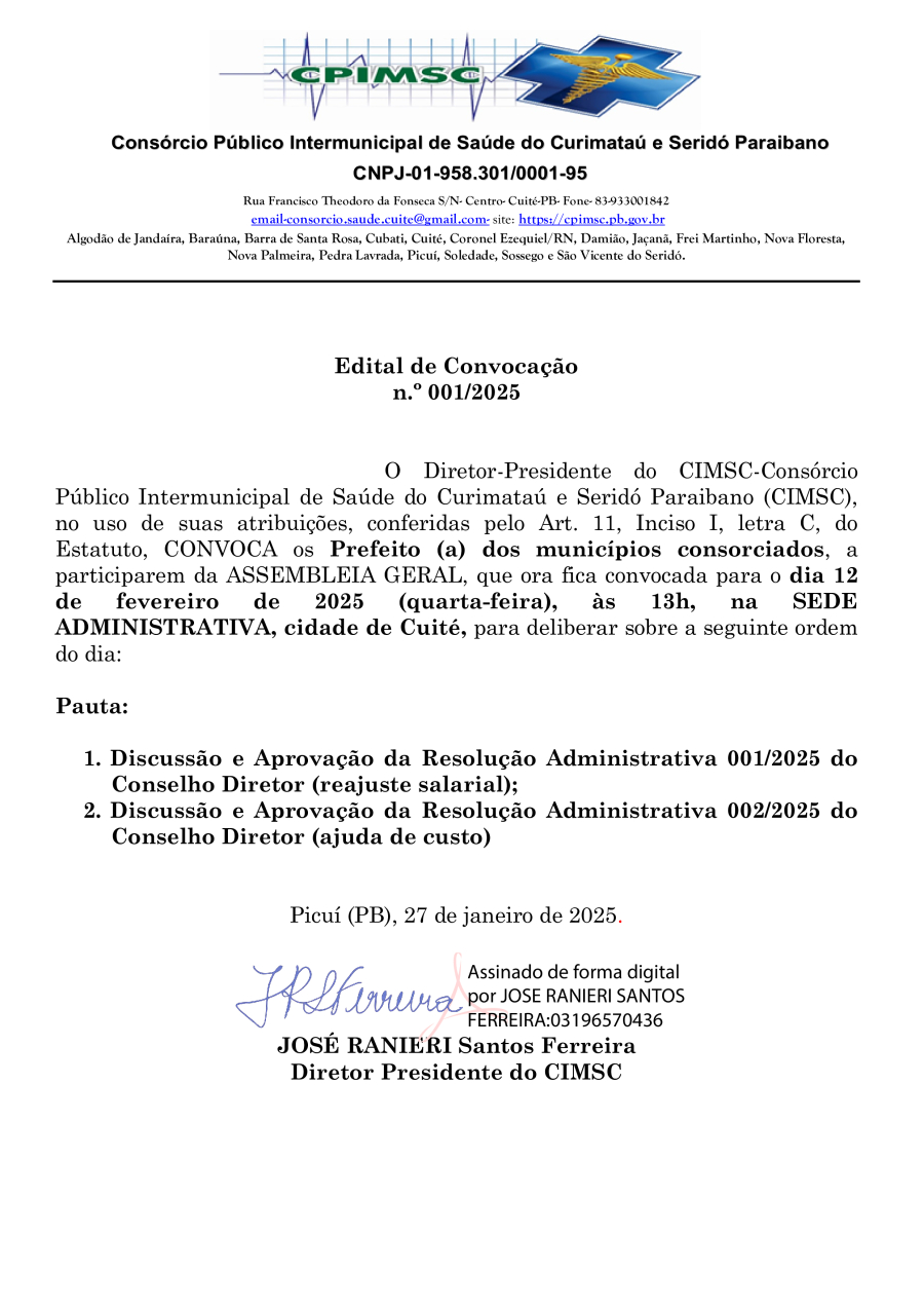 EDITAL DE CONVOCAÇÃO N° 0001/2025
