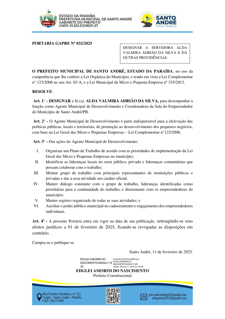 PORTARIA GAPRE Nº 032/2025 - DESIGNAR A SERVIDORA ALDA VALMIRA ADRIÃO DA SILVA E DÁ OUTRAS PROVIDÊNCIAS.