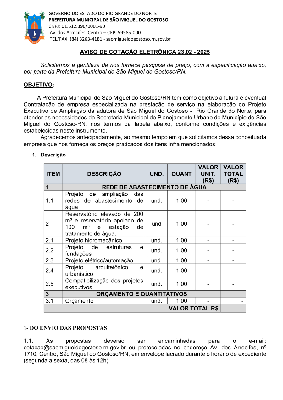 AVISO DE COTAÇÃO ELETRÔNICA 23.02 - 2025