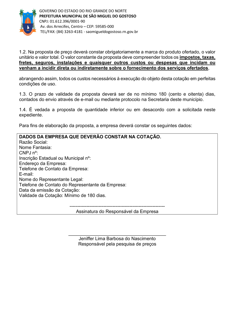 Conforme MP n° 2.200-2 de 24/08/2001, que institui a infraestrutura de chaves Públicas. Matéria Publicada no Diário Oficial do Município de São Miguel do Gostoso/RN no dia - Edição 01030.