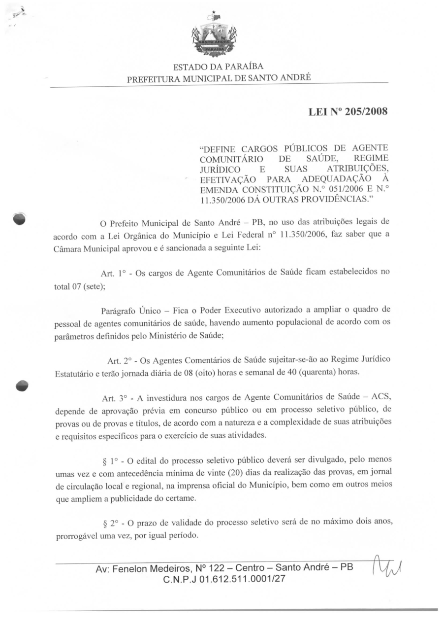 Conforme MP n° 2.200-2 de 24/08/2001, que institui a infraestrutura de chaves Públicas. Matéria Publicada no Diário Oficial do Município de Santo André/PB no dia - Edição .