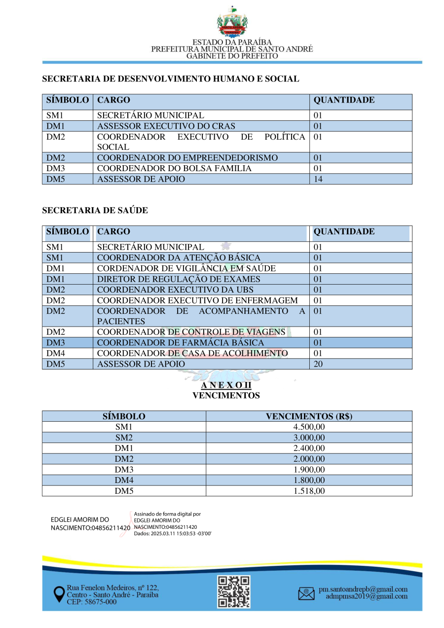 Conforme MP n° 2.200-2 de 24/08/2001, que institui a infraestrutura de chaves Públicas. Matéria Publicada no Diário Oficial do Município de Santo André/PB no dia - Edição 01171.