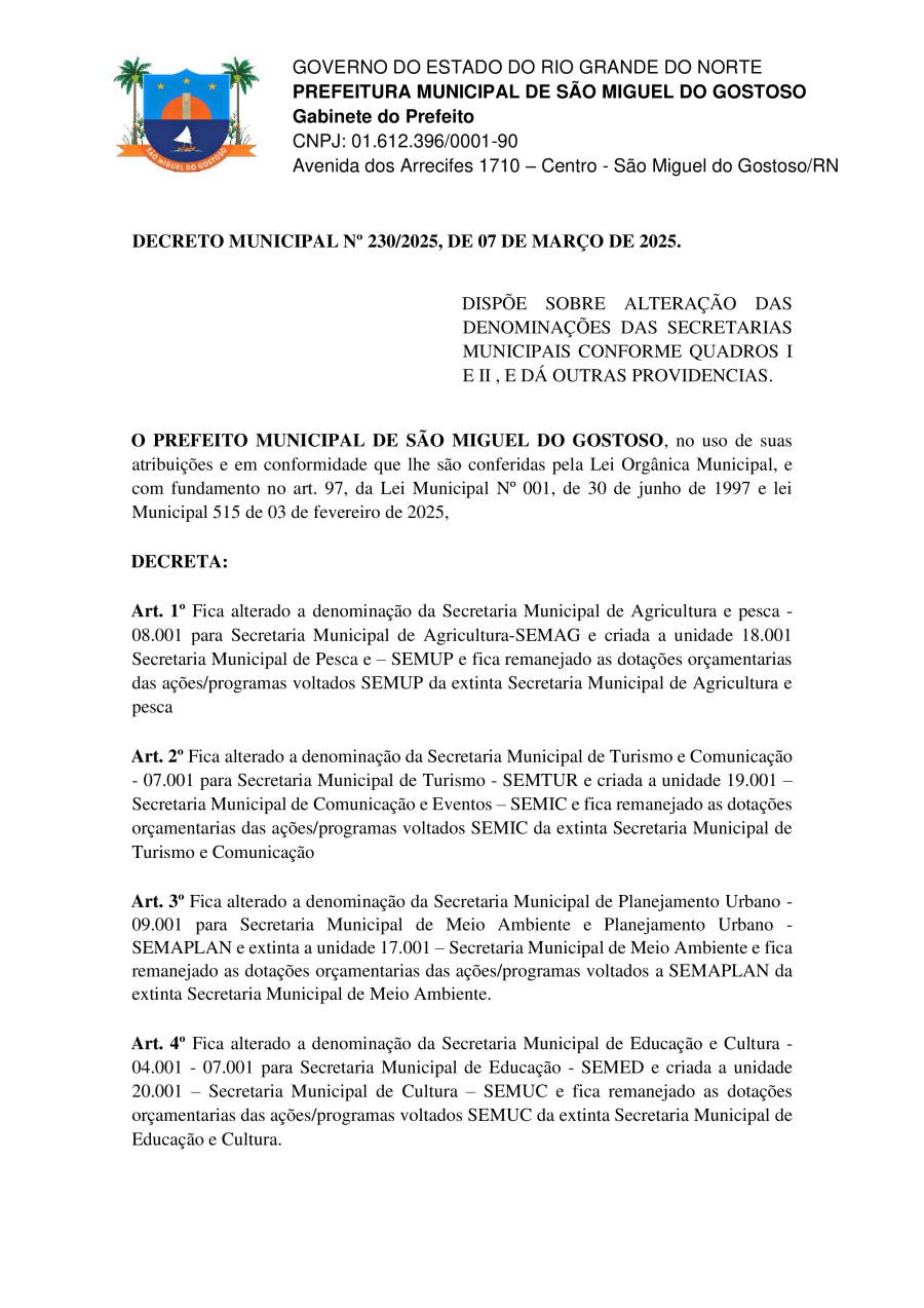 Conforme MP n° 2.200-2 de 24/08/2001, que institui a infraestrutura de chaves Públicas. Matéria Publicada no Diário Oficial do Município de São Miguel do Gostoso/RN no dia - Edição 01036.