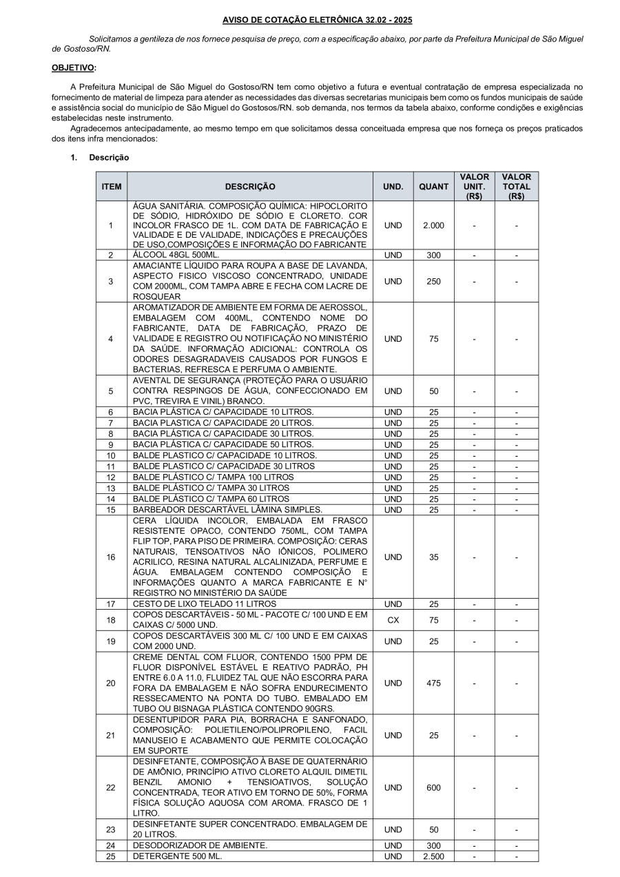 AVISO DE COTAÇÃO ELETRÔNICA 32.02 - 2025