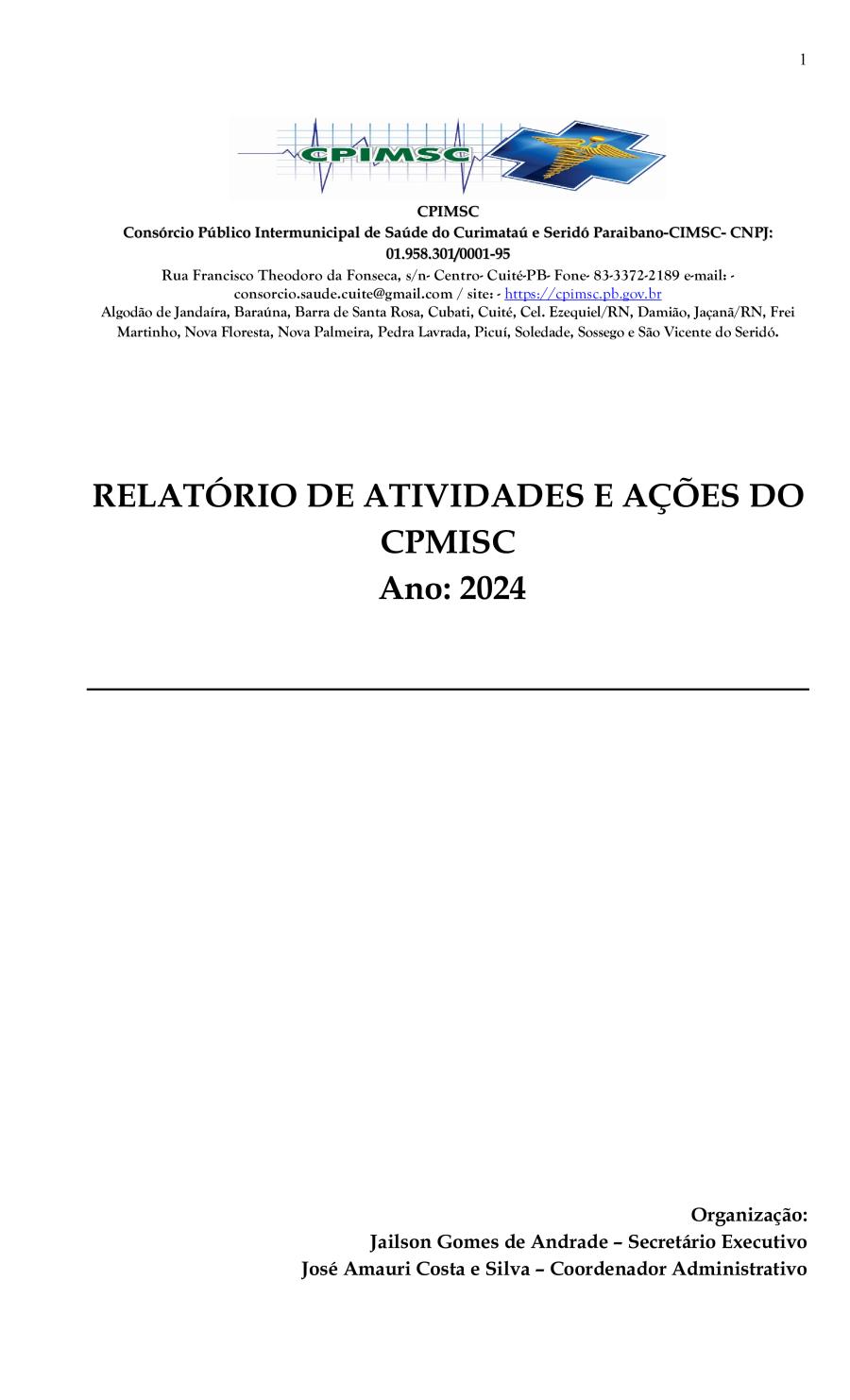 RELATÓRIO DE ATIVIDADES E AÇÕES DO CPMISC ANO: 2024