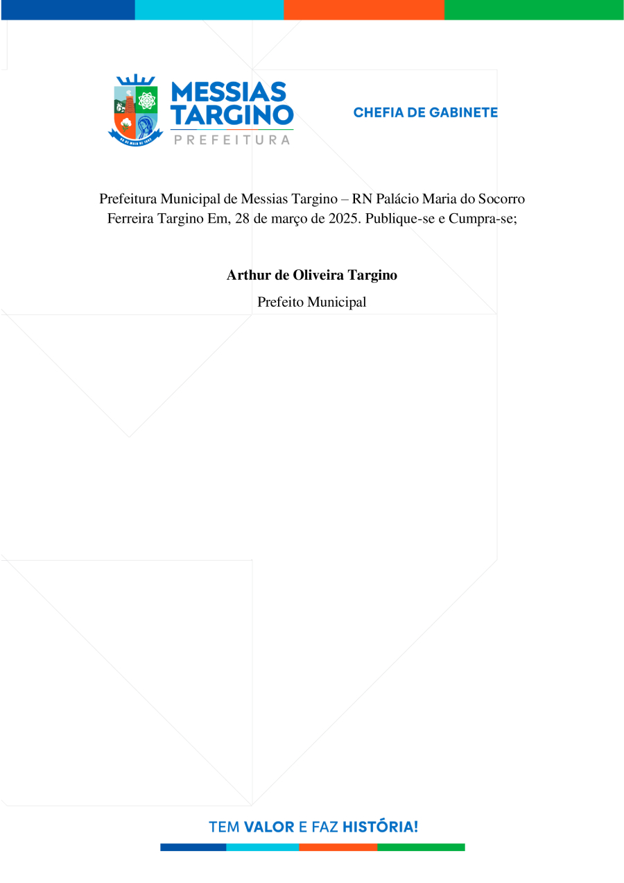 Conforme MP n° 2.200-2 de 24/08/2001, que institui a infraestrutura de chaves Públicas. Matéria Publicada no Diário Oficial do Município de Messias Targino/RN no dia - Edição 01258.