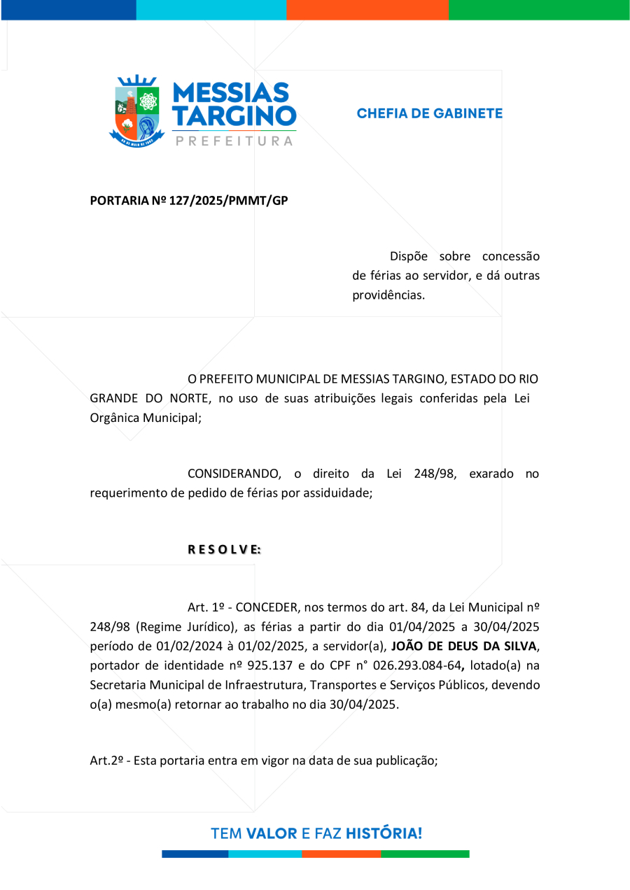 CONCESSÃO DE FÉRIAS AO SERVIDOR - JOÃO DE DEUS