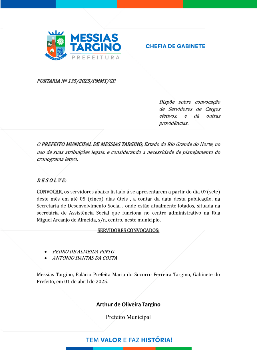 PORTARIA 135 - CONVOCAÇÃO DE SERVIDORES.