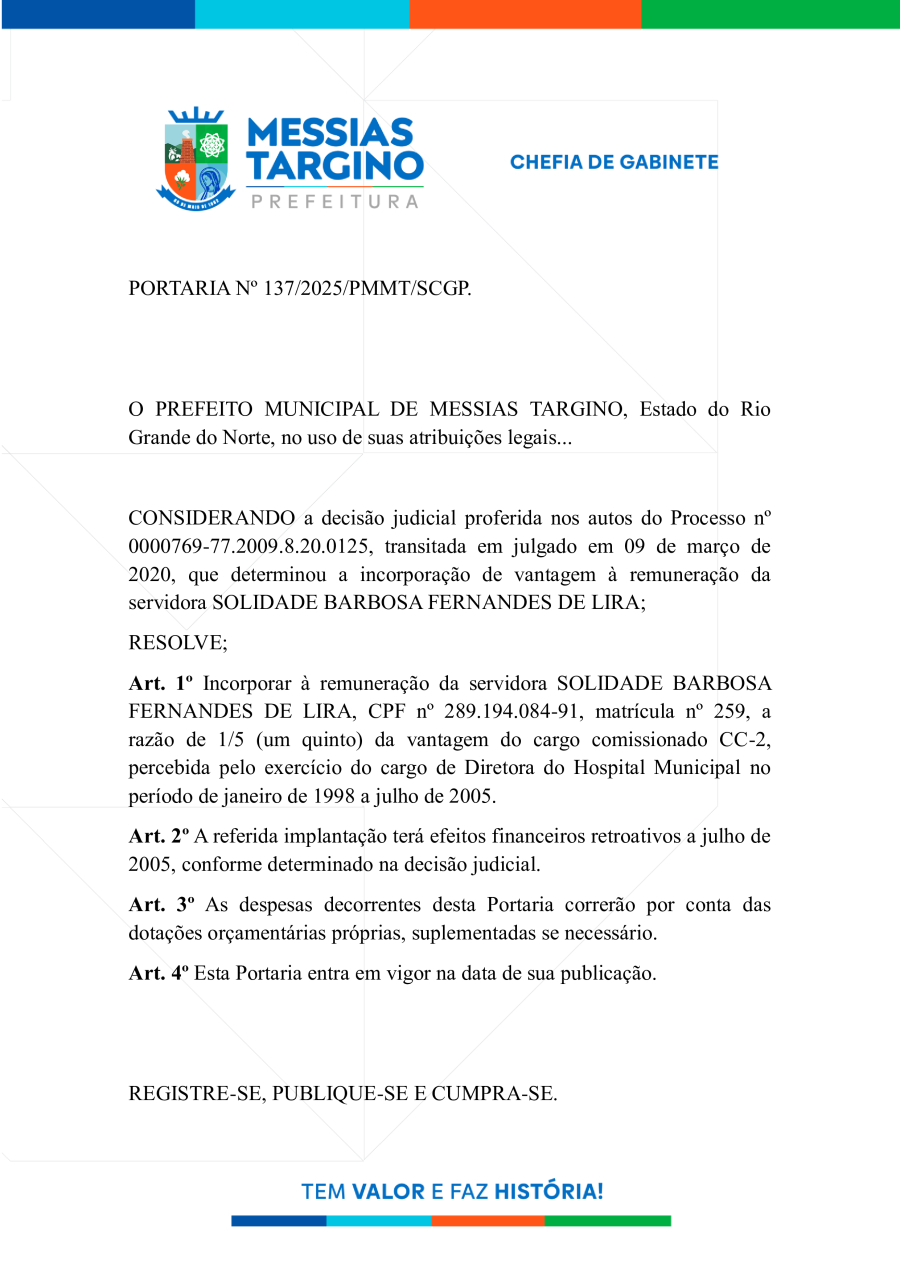 PORTARIA N° 137 - SOLIDADE