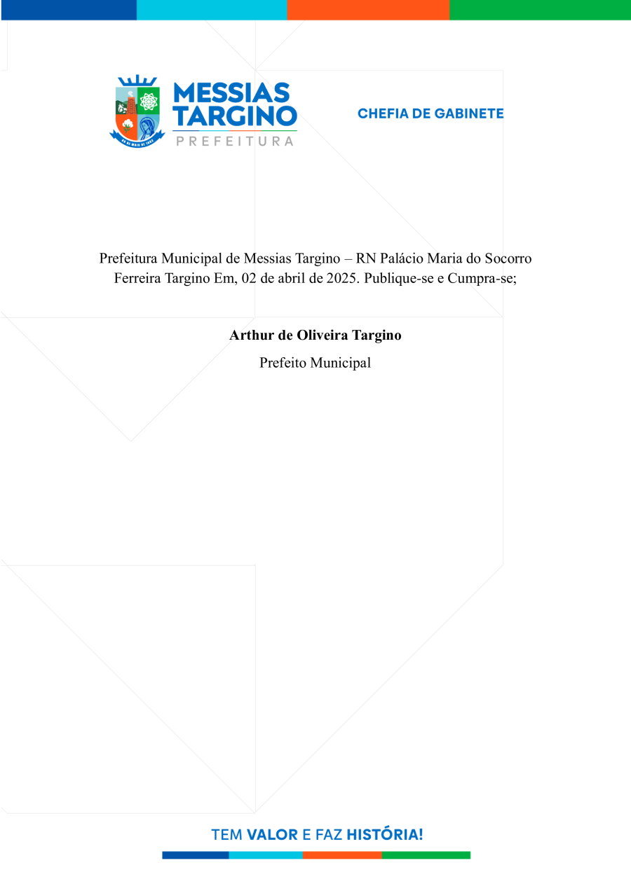 Conforme MP n° 2.200-2 de 24/08/2001, que institui a infraestrutura de chaves Públicas. Matéria Publicada no Diário Oficial do Município de Messias Targino/RN no dia - Edição 01260.