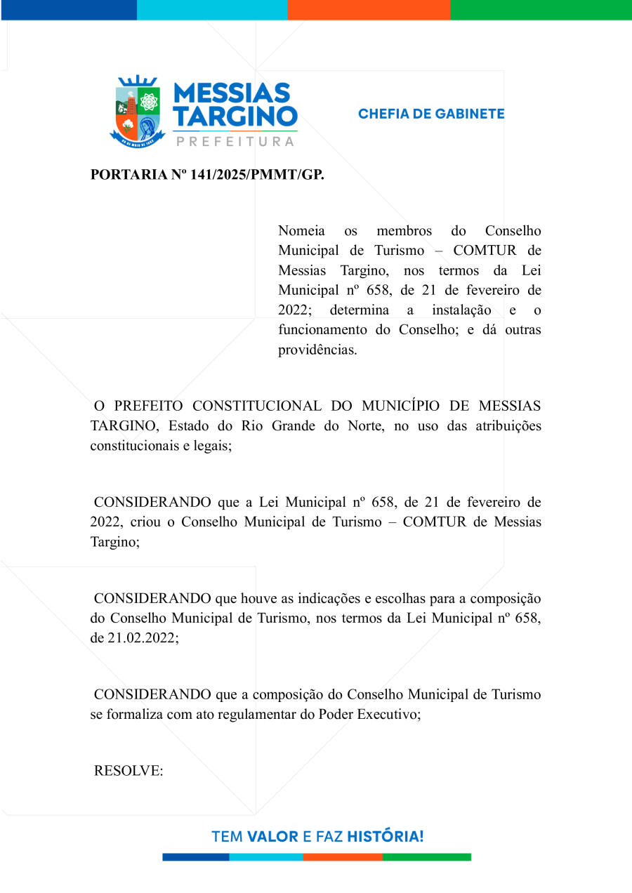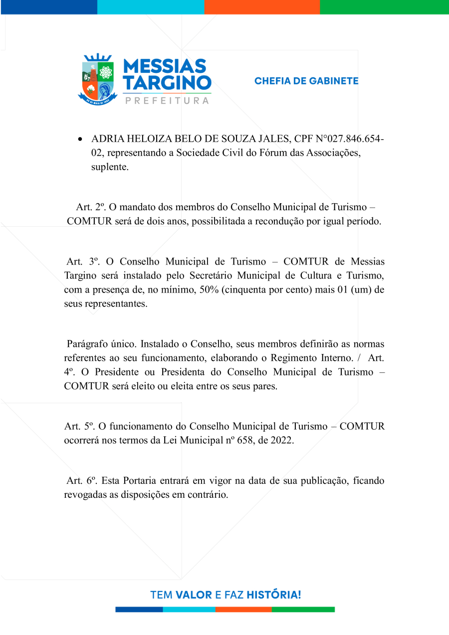 Conforme MP n° 2.200-2 de 24/08/2001, que institui a infraestrutura de chaves Públicas. Matéria Publicada no Diário Oficial do Município de Messias Targino/RN no dia - Edição 01265.