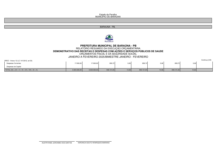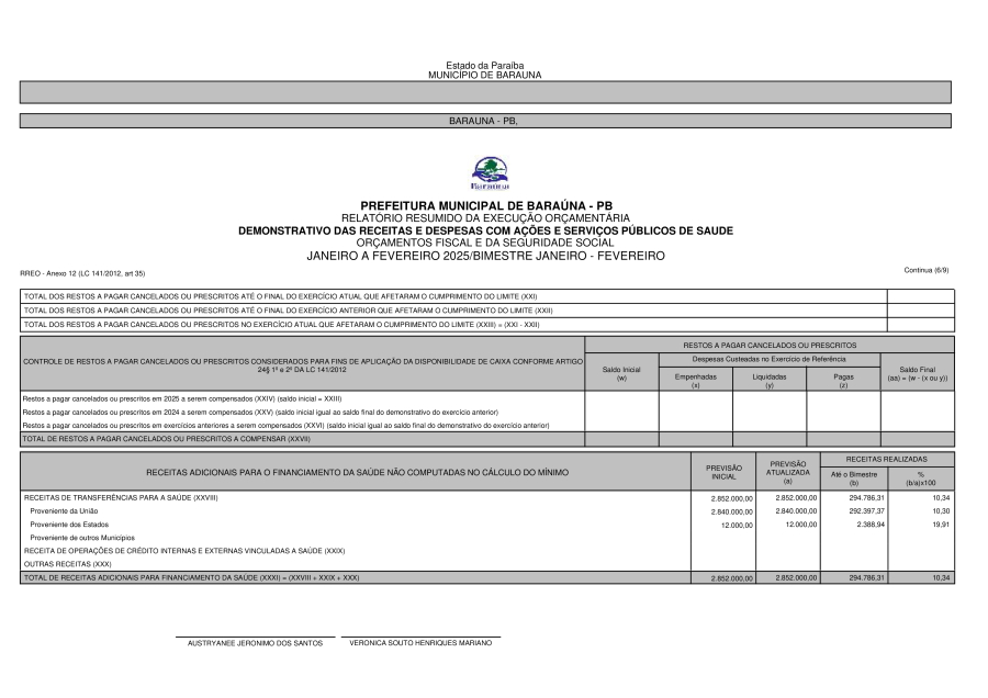 ANEXO 12 RREO - DEMONSTRATIVO DAS RECEITAS E DESPESAS COM AÇÕES E SERVIÇOS PÚBLICOS DE SAÚDE. - 10 DE ABRIL DE 2025.