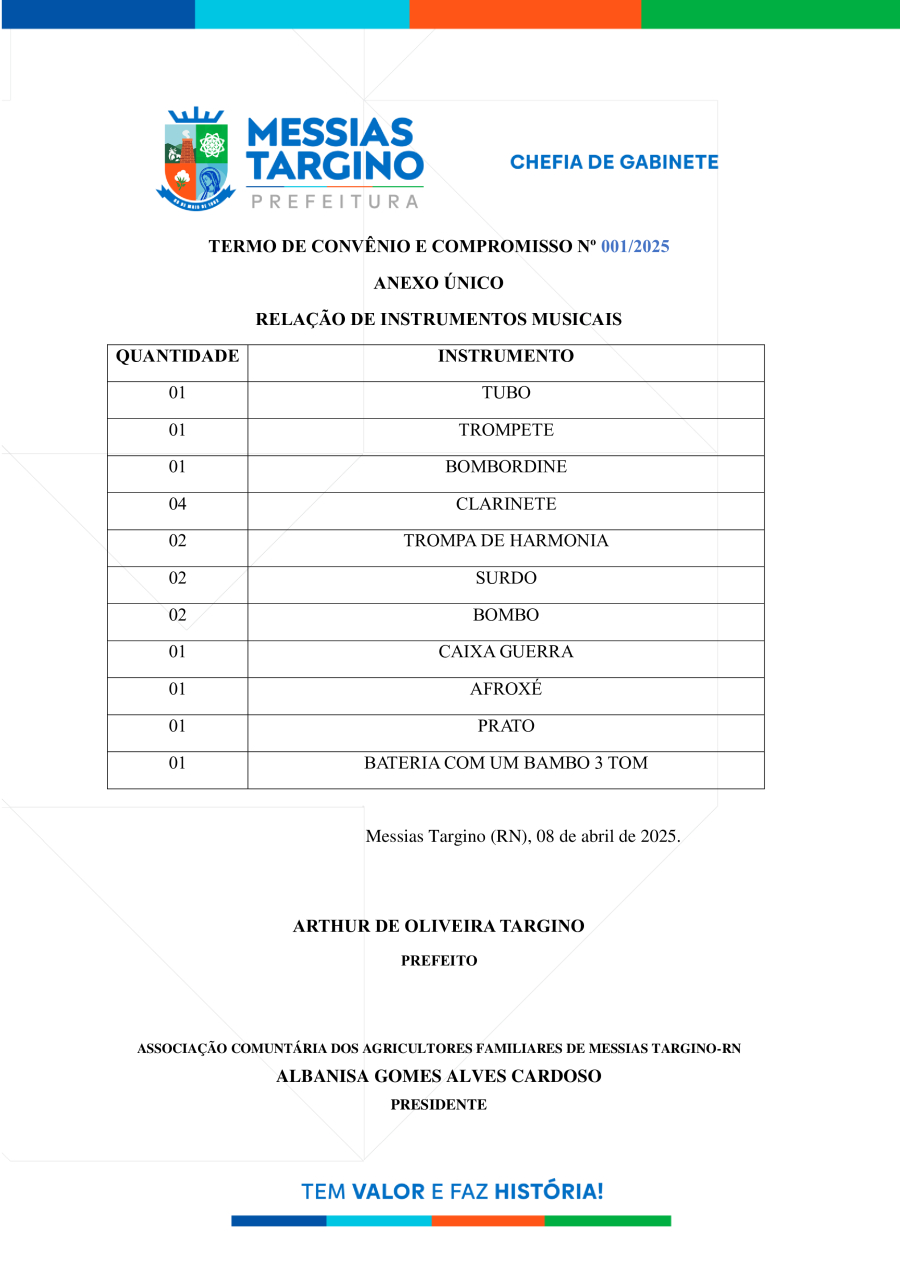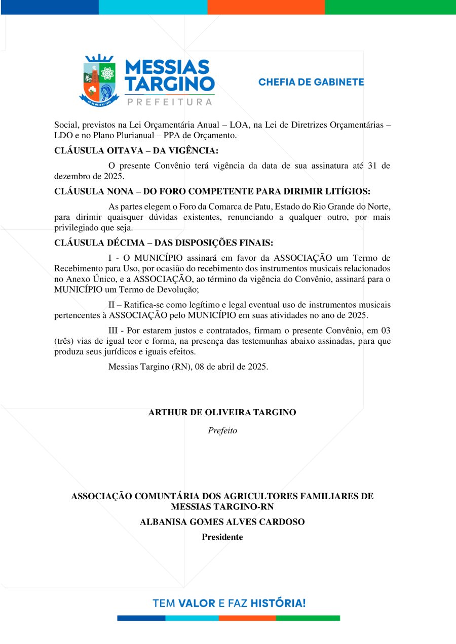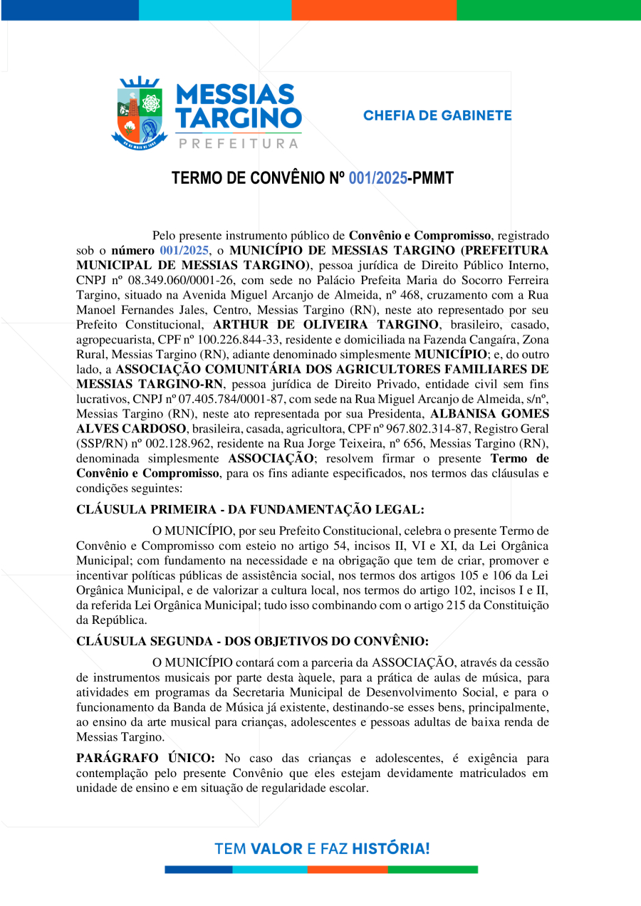 Conforme MP n° 2.200-2 de 24/08/2001, que institui a infraestrutura de chaves Públicas. Matéria Publicada no Diário Oficial do Município de Messias Targino/RN no dia - Edição 01268.